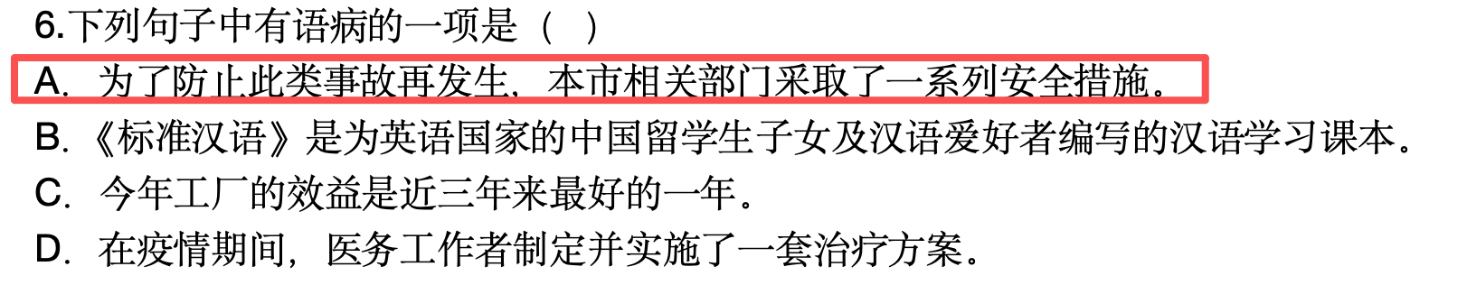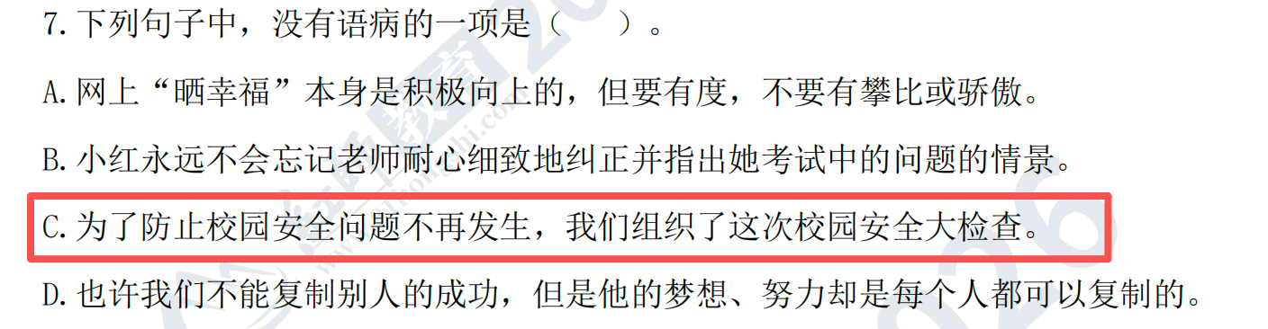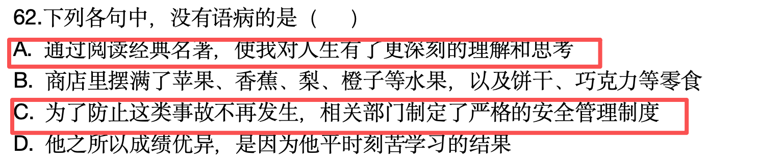 原題:62. 下列句子沒(méi)有語(yǔ)病的是( )。