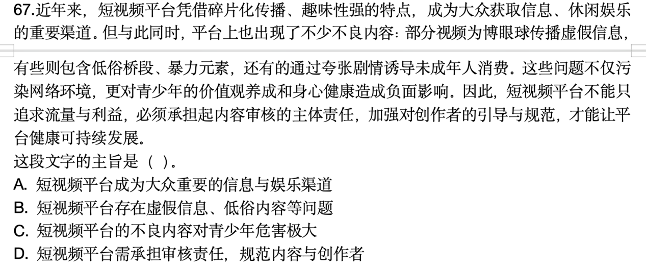 原題:68. 下列句子沒(méi)有語(yǔ)病的一句是( )。