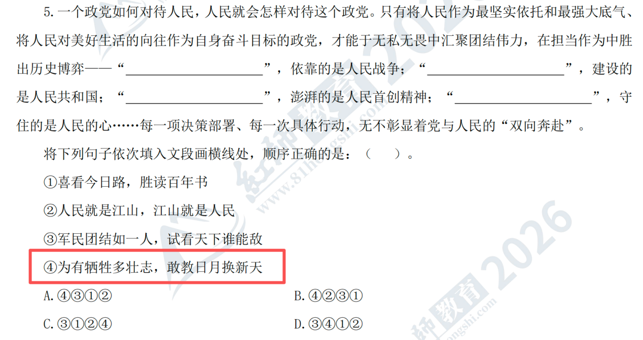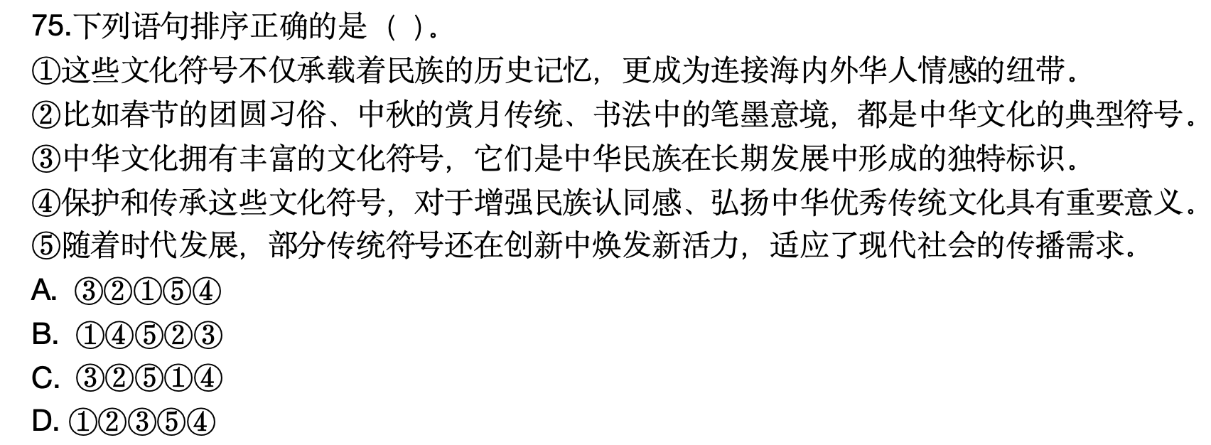 原題:64.下列語(yǔ)句排序正確的是( )。