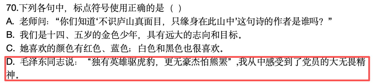 原題:79. 下列句子中,標(biāo)點(diǎn)符號(hào)使用正確的是( )。