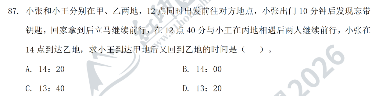 2026藍(lán)軍卷五第87題(都是相遇追及問(wèn)題,都可以用正反比求解,解題方法差不多)
