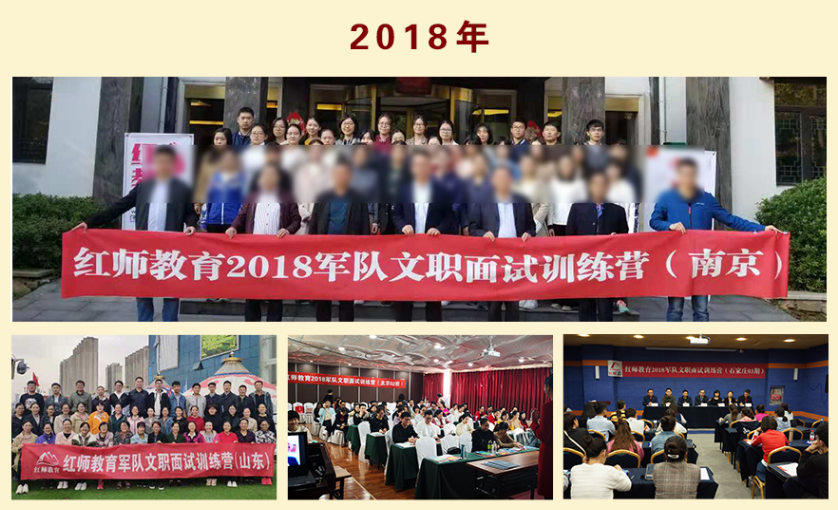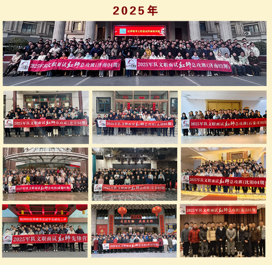 紅師并非市場的后來者。自2018年軍隊(duì)文職首次面上社會公開招考以來,紅師便已投身文職培訓(xùn)領(lǐng)域,成為國內(nèi)最早開展相關(guān)培訓(xùn)的機(jī)構(gòu)之一。宣傳圖中逐年排列的開班合影,不僅是時間的刻度,更是實(shí)力的見證: