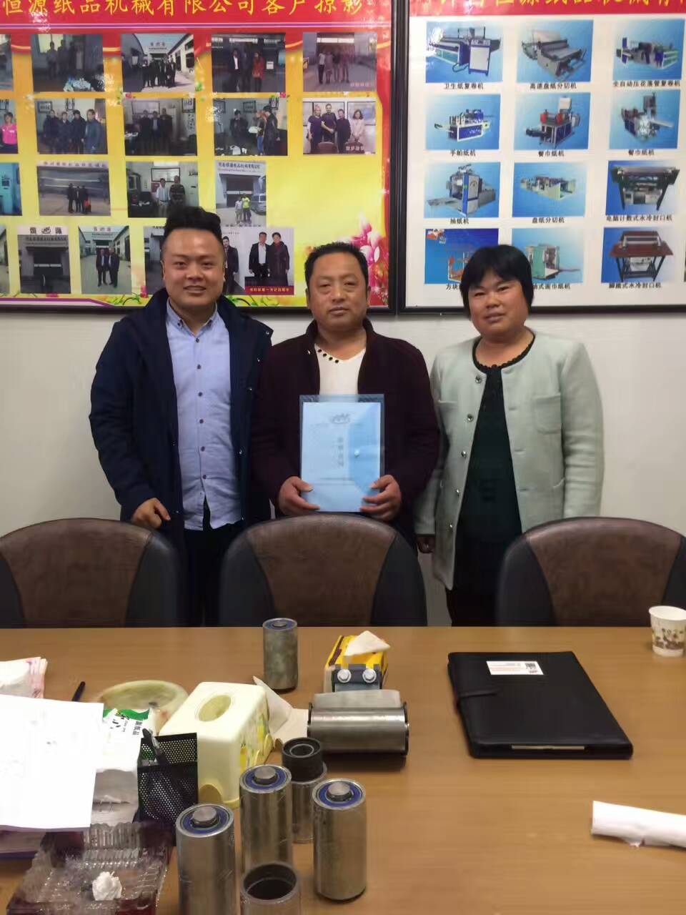 河南濮陽(yáng)郭先生訂購(gòu)十排全自動(dòng)抽紙機(jī),來(lái)做大型抽紙加工創(chuàng)業(yè)。郭先生在經(jīng)過(guò)對(duì)比河北山東廣東廠家之后,還是選擇恒源紙品機(jī)械公司,感謝郭總的信任