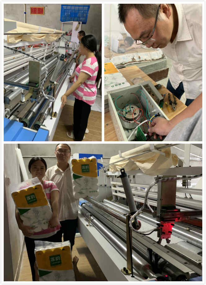 湖北麻城客戶訂購(gòu)的全自動(dòng)衛(wèi)生紙復(fù)卷機(jī)今天已經(jīng)安裝調(diào)試完畢了,客戶現(xiàn)在已經(jīng)可以獨(dú)立操作生產(chǎn)了,成品紙也已經(jīng)生產(chǎn)包裝好了。祝賀麻城客戶學(xué)習(xí)完畢。