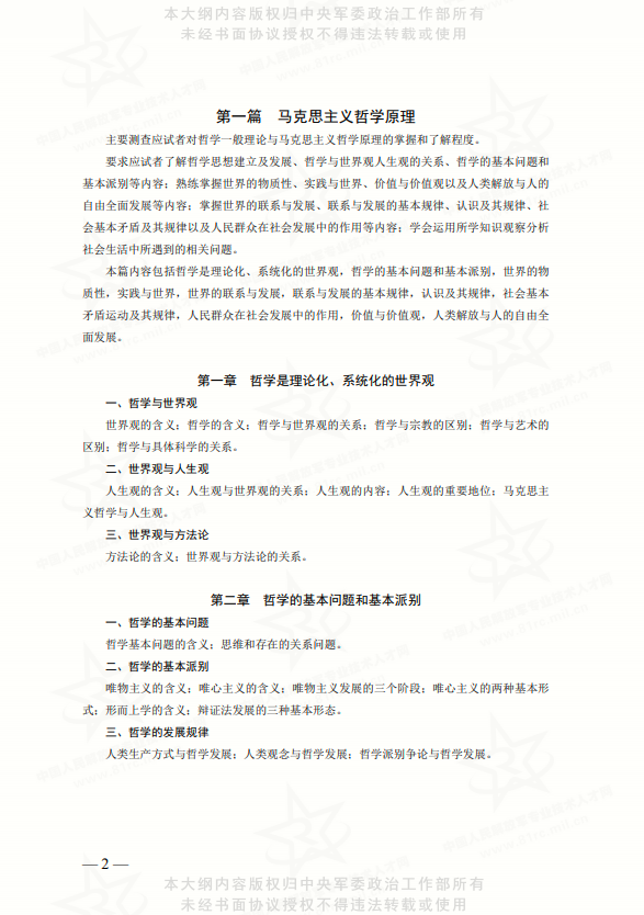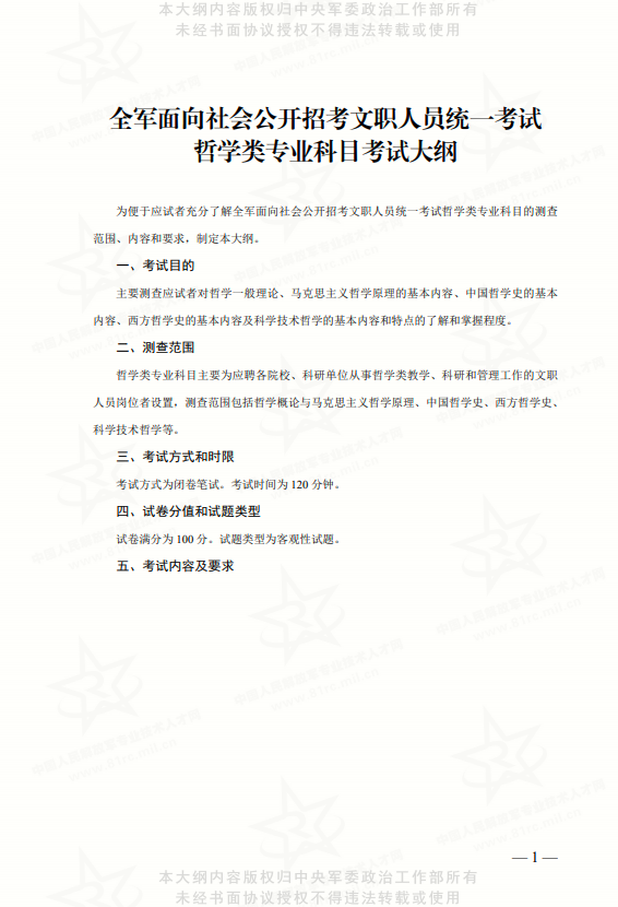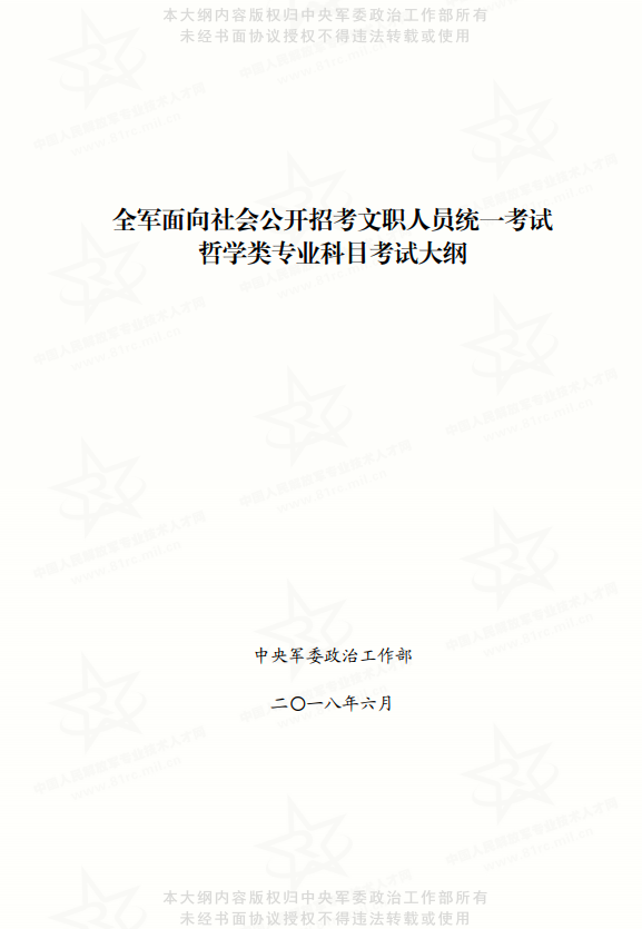 2026年軍隊(duì)文職考試大綱已確定,小編將官網(wǎng)2023年8月12日發(fā)布的新版重慶省軍隊(duì)文職考試大綱匯總?cè)缦拢航?,中央軍委政治工作部編修發(fā)布新