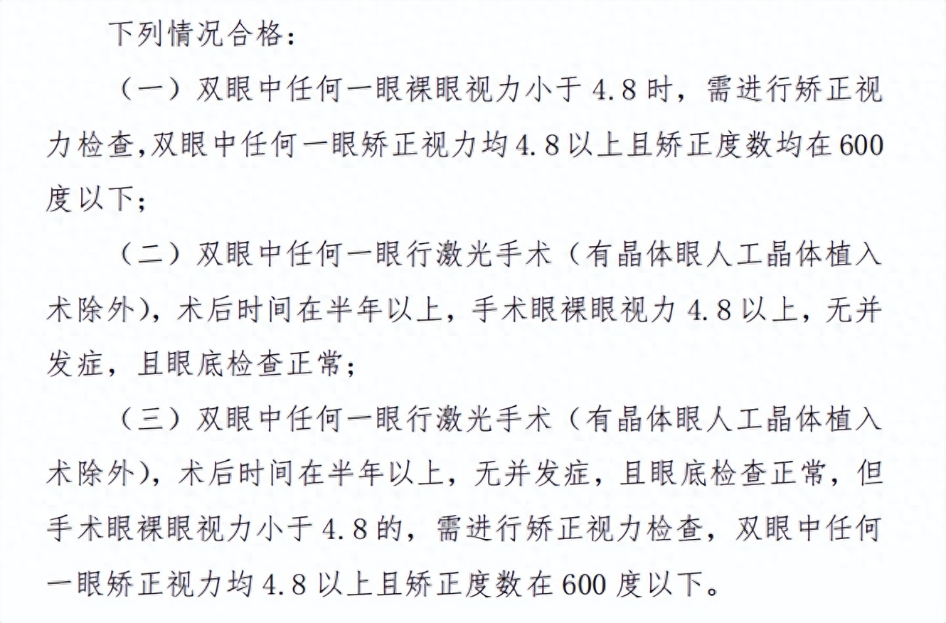 視力:每一眼矯正視力4.8以上且矯正度數(shù)800度以下,無明顯視功能損害眼病,合格。(其中管理崗和專業(yè)技術(shù)類中的醫(yī)療衛(wèi)生、實(shí)驗(yàn)、體育崗矯正度數(shù)需600度以下)