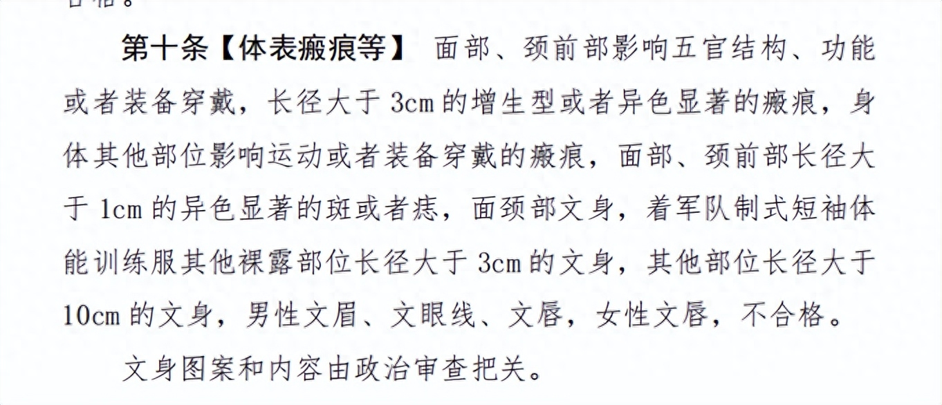 紋身:注意女生不能紋唇,男生不能紋眉紋眼線紋唇。且需要滿足圖片內(nèi)的規(guī)定,穿短袖不漏紋身等。