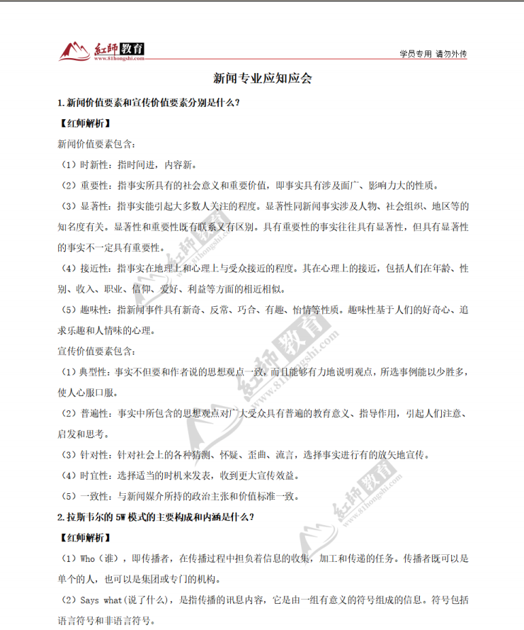 1.新聞價值要素和宣傳價值要素分別是什么?