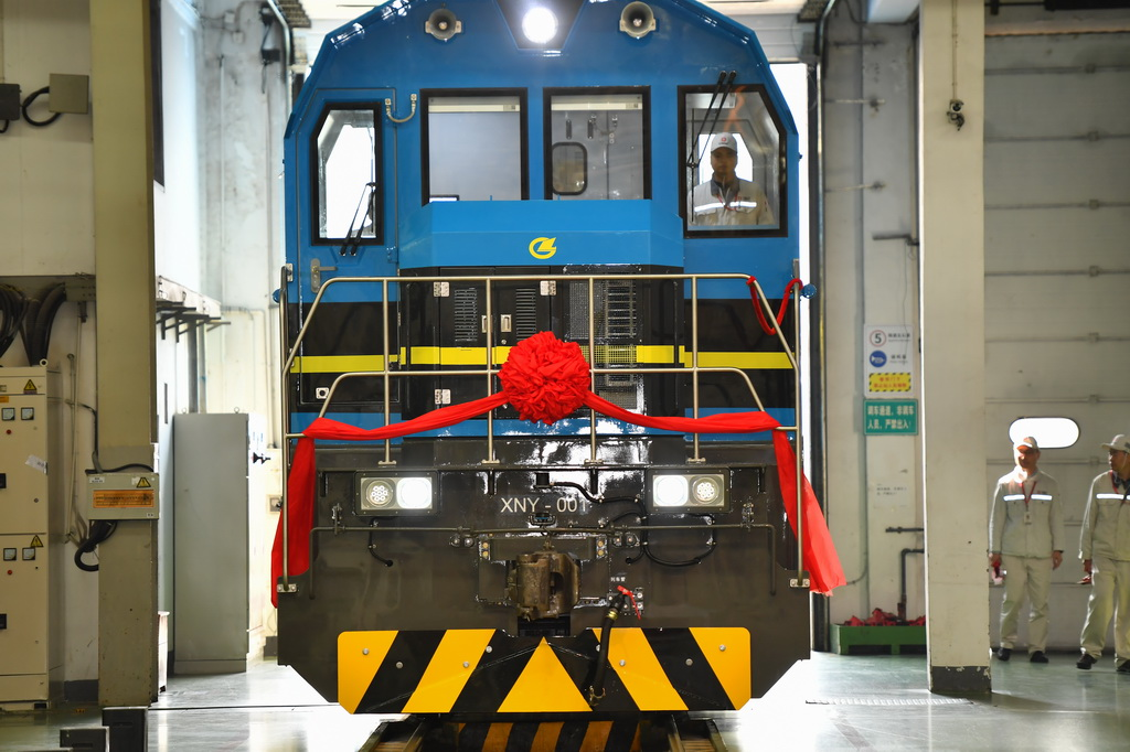 2023年11月16日,我國首臺(tái)新造大功率純電新能源調(diào)車機(jī)車在湖南株洲中車株機(jī)公司下線。這臺(tái)機(jī)車最大牽引功率1500kW,能滿足冶金、港口、電力、石化、礦山等行業(yè)內(nèi)部的鐵路運(yùn)輸需求,具有綠色低碳、經(jīng)濟(jì)適用、智能先進(jìn)等特點(diǎn)。(時(shí)政來源:人民網(wǎng))