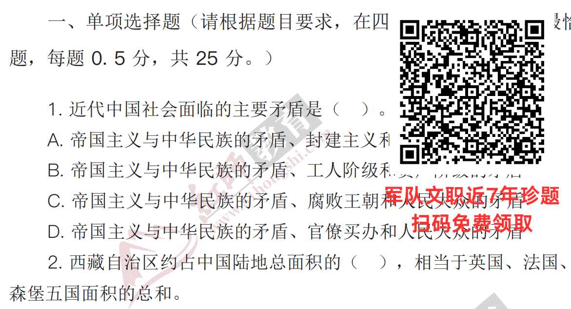 | 軍隊(duì)文職25年筆試課程 | 軍隊(duì)文職歷年考題 | 軍隊(duì)文職歷年分?jǐn)?shù) |