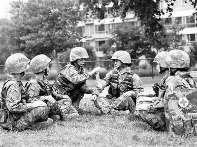 上圖:聯(lián)勤保障部隊第980醫(yī)院文職人員認真學(xué)習(xí)戰(zhàn)救技能。李佳隆攝