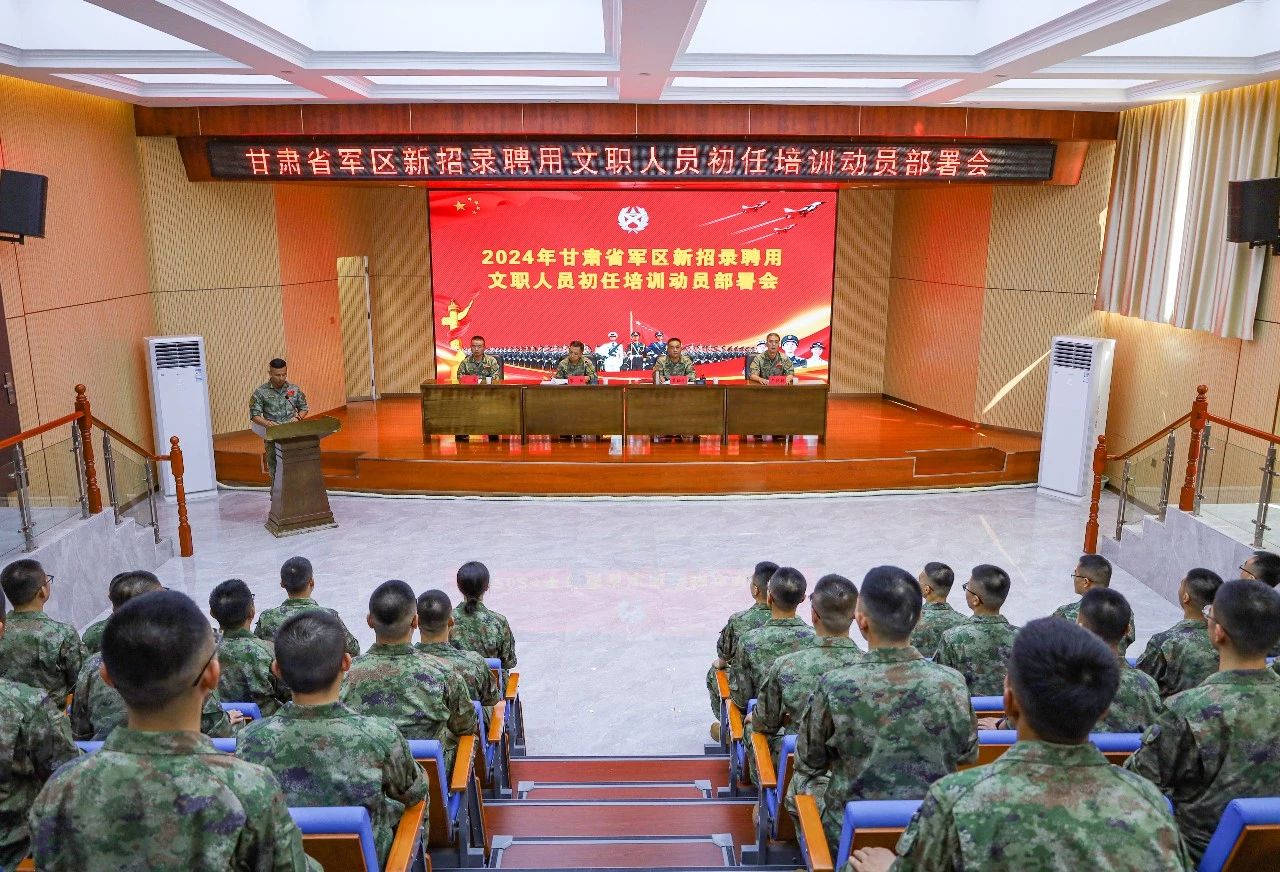 △甘肅省軍區(qū)2024年新招錄聘用文職人員初任培訓動員部署會現(xiàn)場。徐朝偉 攝