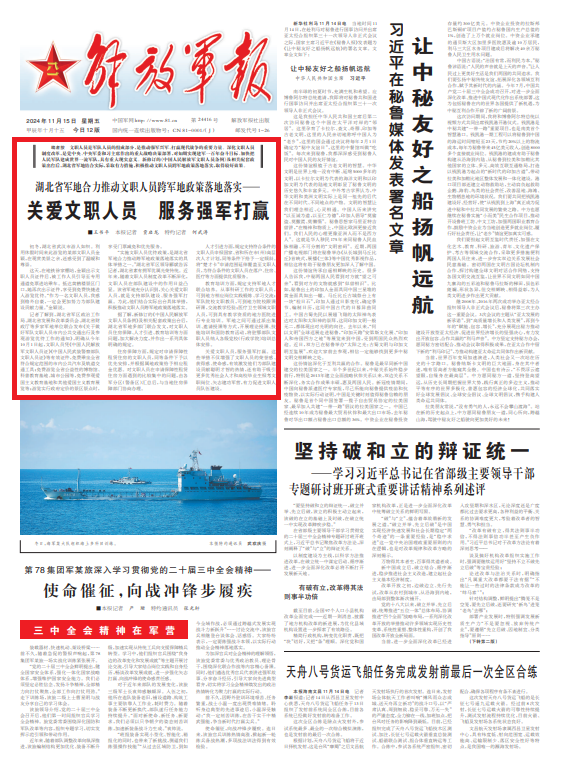 “實(shí)施文職人員優(yōu)待政策,是湖北省軍地合力推動(dòng)跨軍地政策落地落實(shí)的具體舉措之一。”湖北省軍區(qū)領(lǐng)導(dǎo)酈斌告訴記者,湖北省素有擁軍優(yōu)屬光榮傳統(tǒng)。近年來,隨著文職人員制度改革不斷深化,文職人員在部隊(duì)建設(shè)中的作用日益凸顯。該省軍地充分認(rèn)識(shí)到,關(guān)心關(guān)愛文職人員,就是支持部隊(duì)建設(shè)、服務(wù)強(qiáng)軍打贏。為此,他們結(jié)合實(shí)際出臺(tái)具體舉措,積極推動(dòng)文職人員跨軍地政策落地落實(shí)。