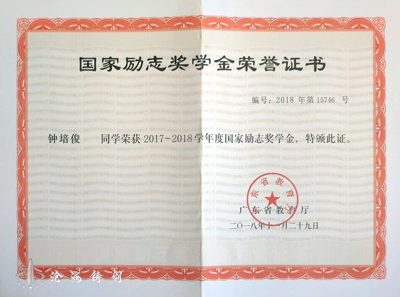 大學期間不僅獲得國家勵志獎學金