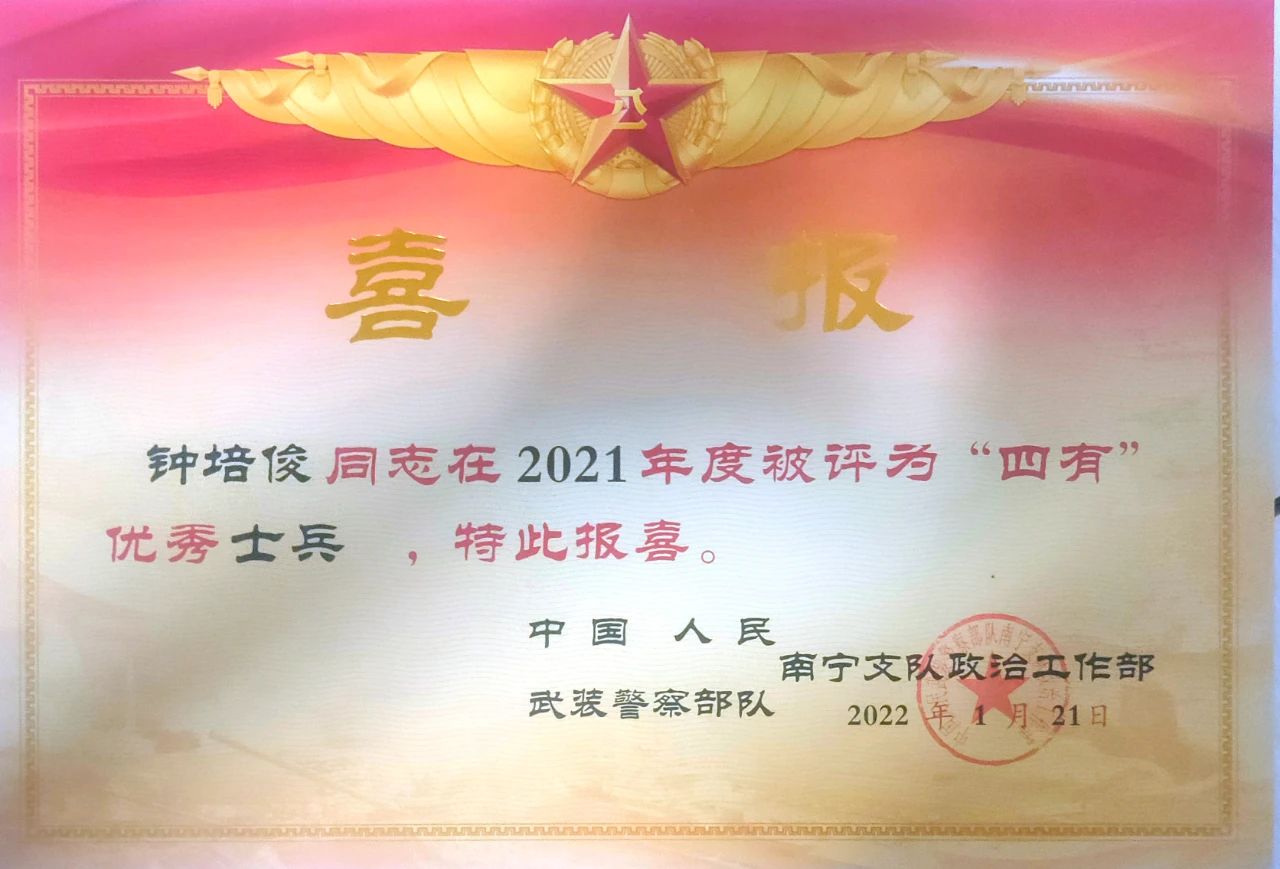 2021年,鐘培俊在武警部隊服役