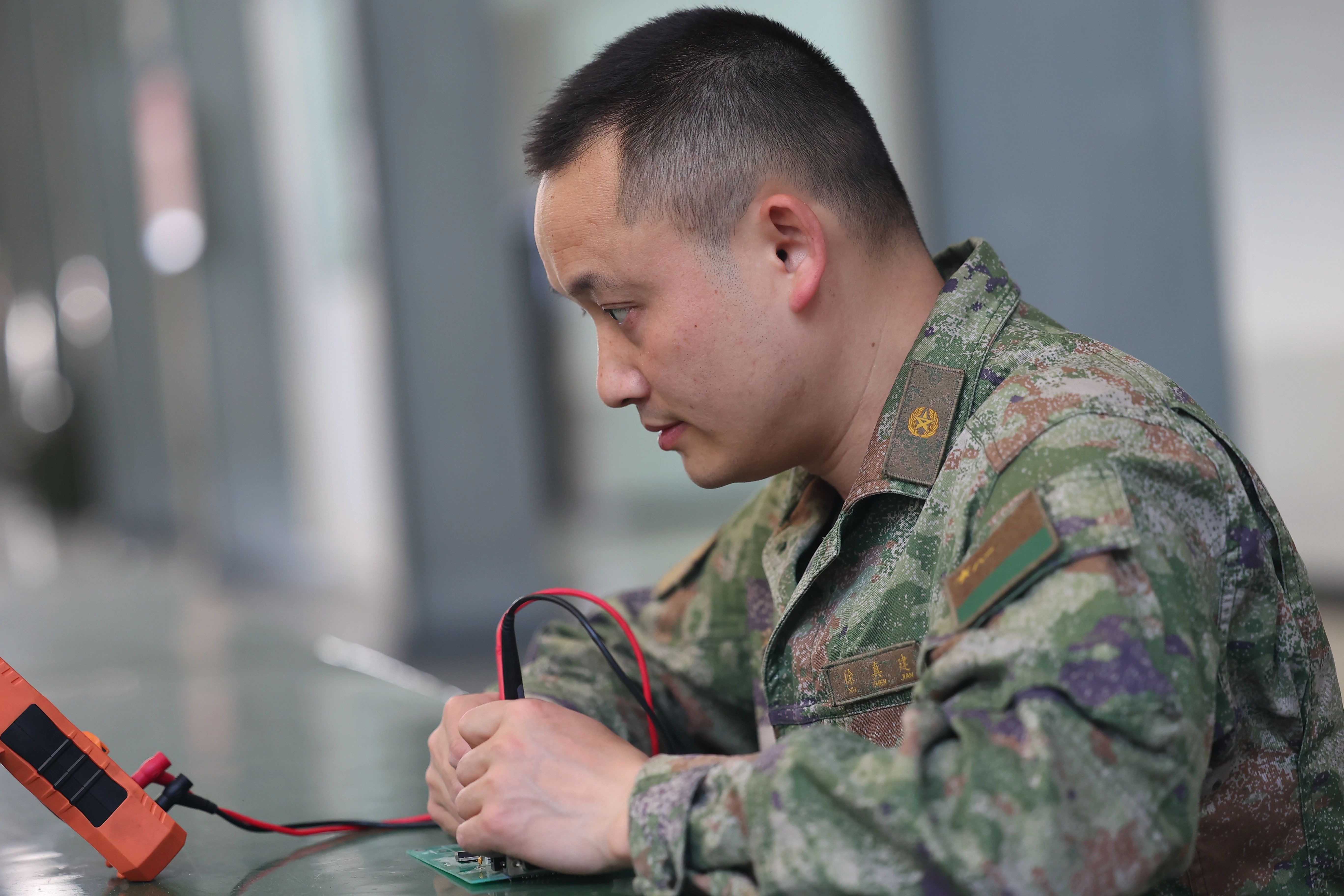 那時氣溫濕熱,他躲在維修間,帶著滿頭大汗對著一堆電路板反復(fù)地檢測、焊接、調(diào)試、分析線路、排除故障,一待就是整整一個上午,晚上回家后趴在書桌上他又熬到半夜復(fù)習(xí)理論。付出終有回報,最終他奪得電子專用設(shè)備裝調(diào)工賽項陸軍第二、全軍第十的優(yōu)異成績,年底榮立二等功。