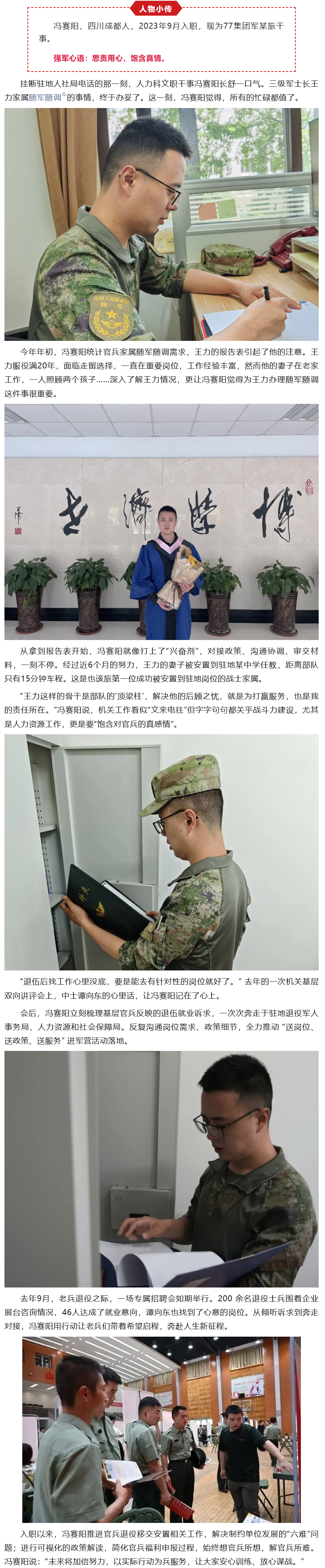 原標(biāo)題:馮賽陽:對(duì)官兵,真感情