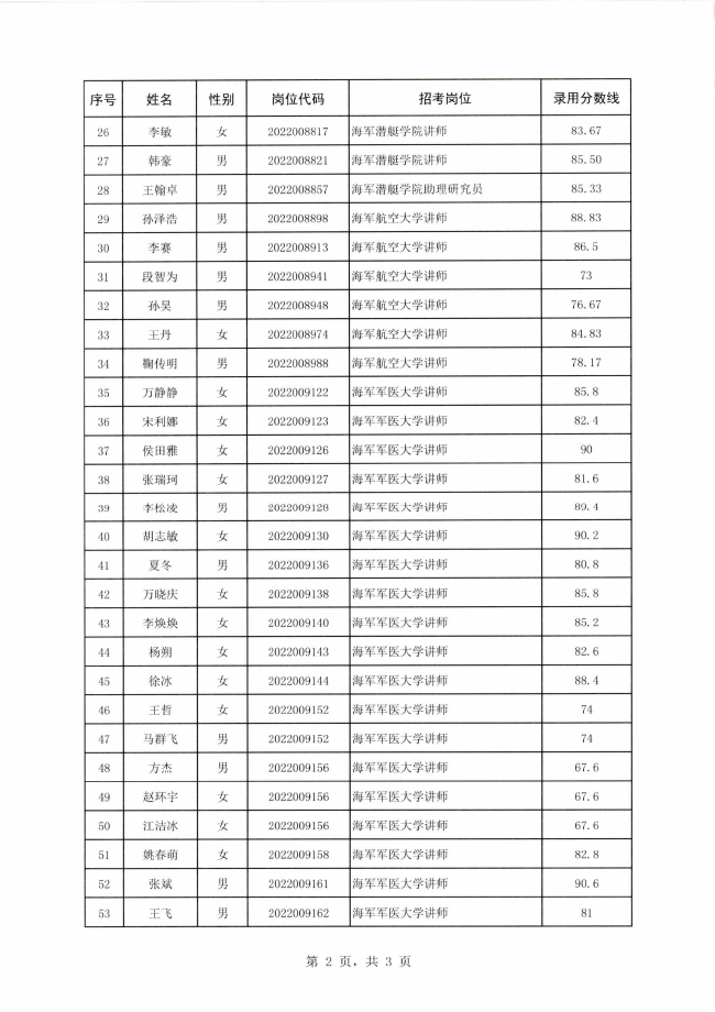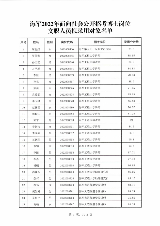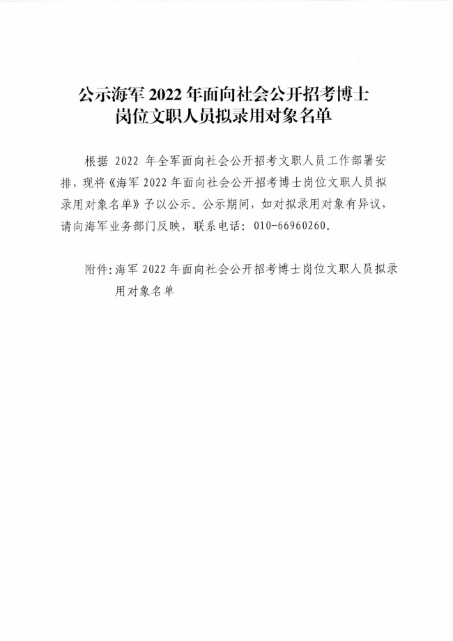 原文標(biāo)題:公示海軍2022年面向社會(huì)公開(kāi)招考博士崗位文職人員擬錄用對(duì)象名單