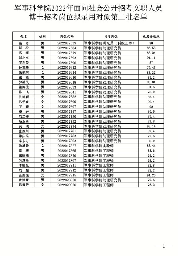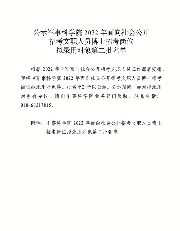 原文標(biāo)題:公示軍事科學(xué)院2022年面向社會公開招考文職人員博士招考崗位擬錄用對象第二批名單