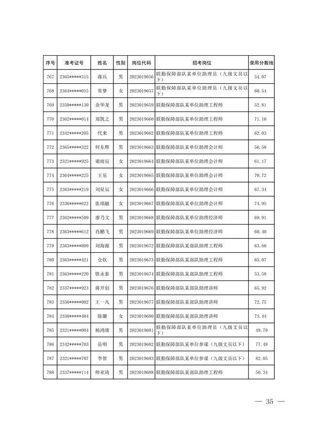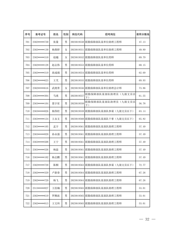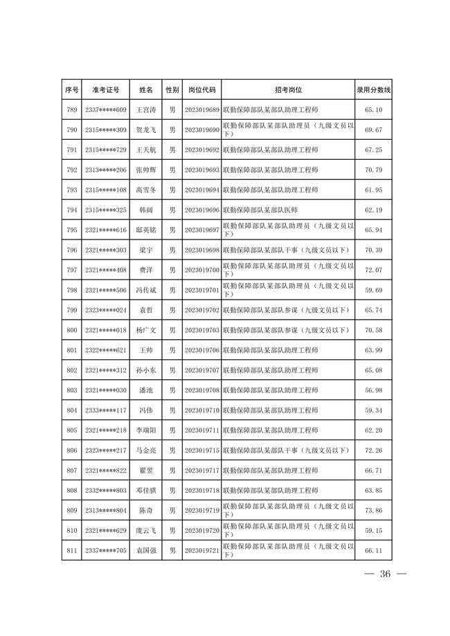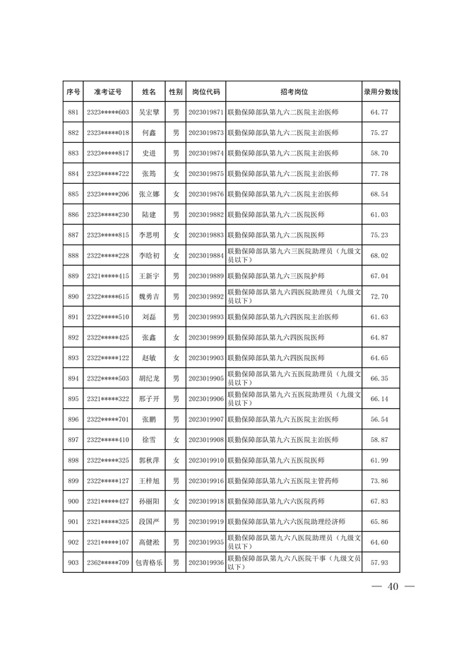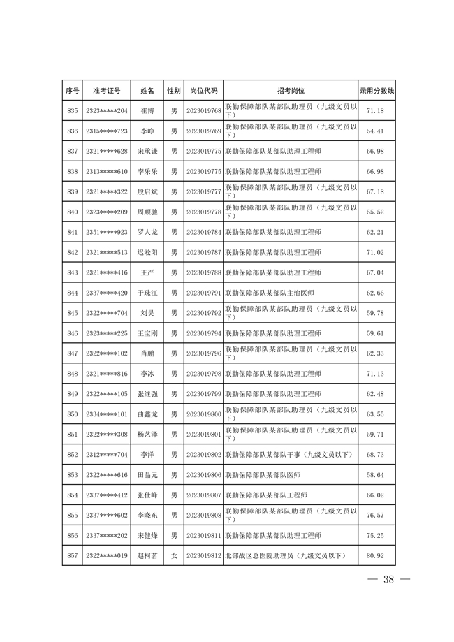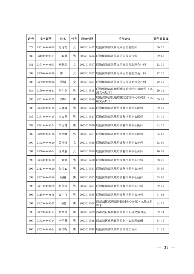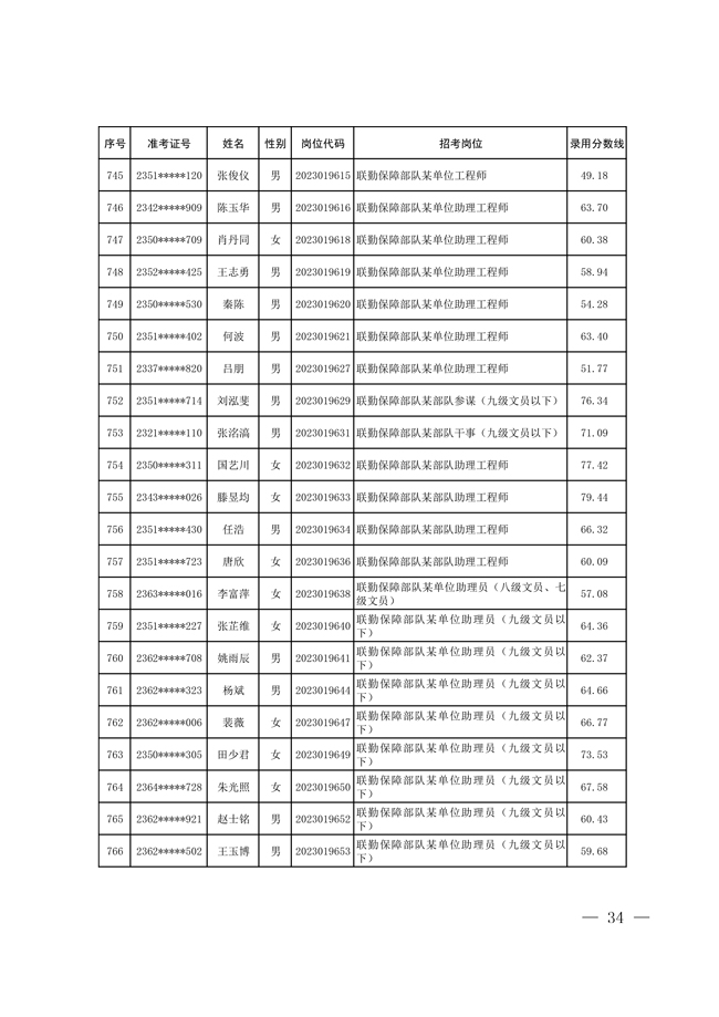 2023年聯(lián)勤保障部隊軍隊文職第一批擬錄用1040人名單公示