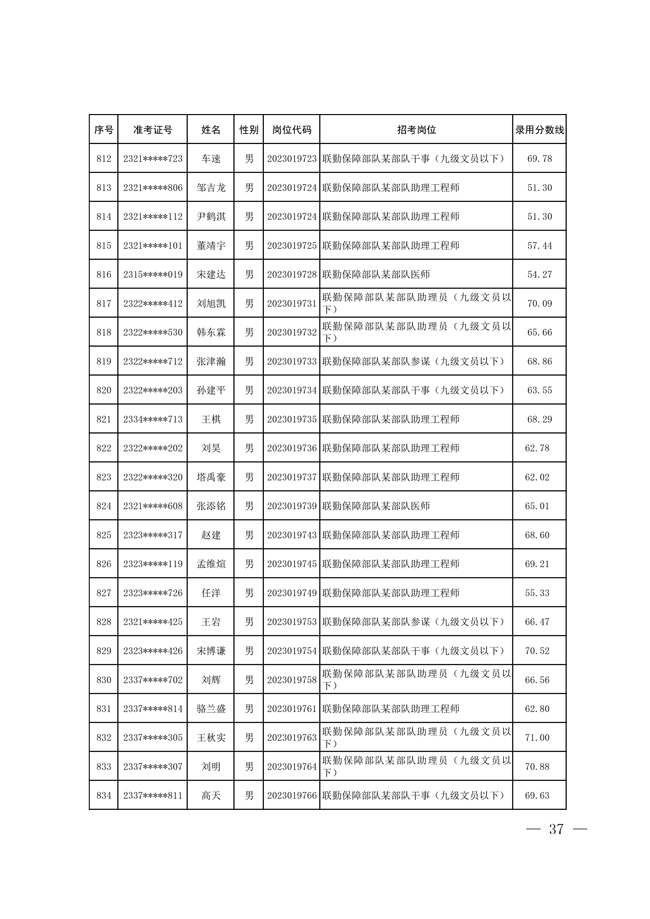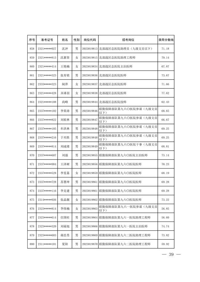 • 2023年中央軍委后勤保障部公示文職人員擬錄用對象448人