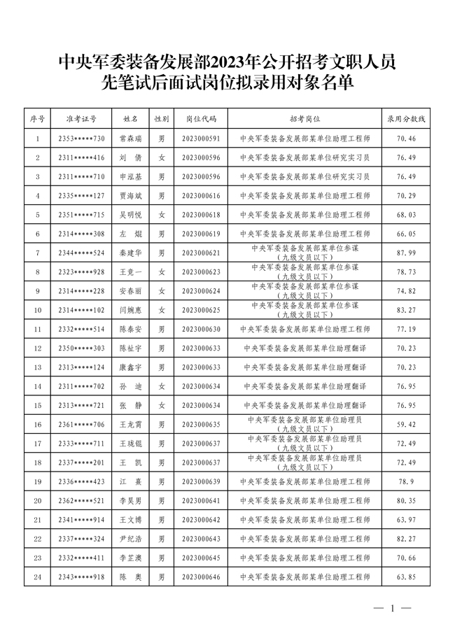 原文標題:公示中央軍委裝備發(fā)展部2023年公開招考文職人員擬錄用對象名單