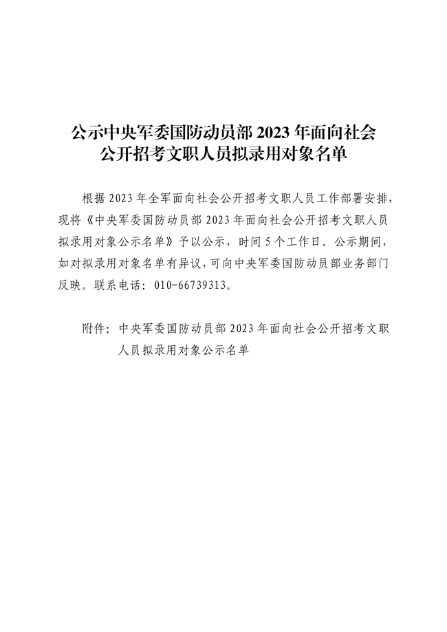 1.中央軍委國(guó)防動(dòng)員部直附屬單位2023年面向社會(huì)公開招考文職人員擬錄用對(duì)象公示名單