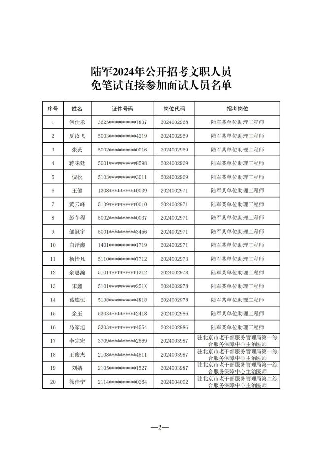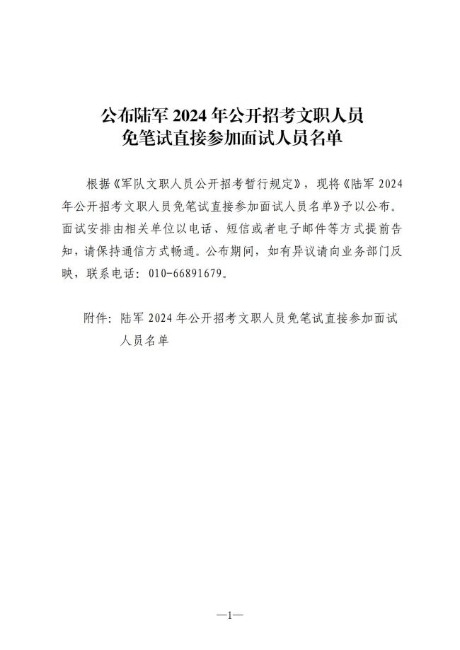 原文標(biāo)題:公布陸軍2024年公開招考文職人員免筆試直接參加面試人員名單
