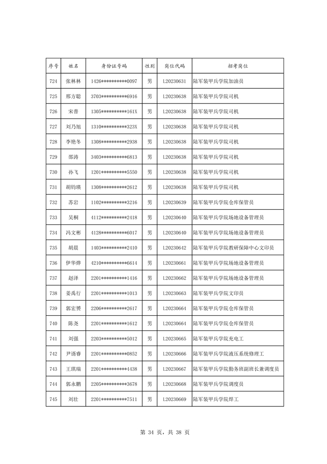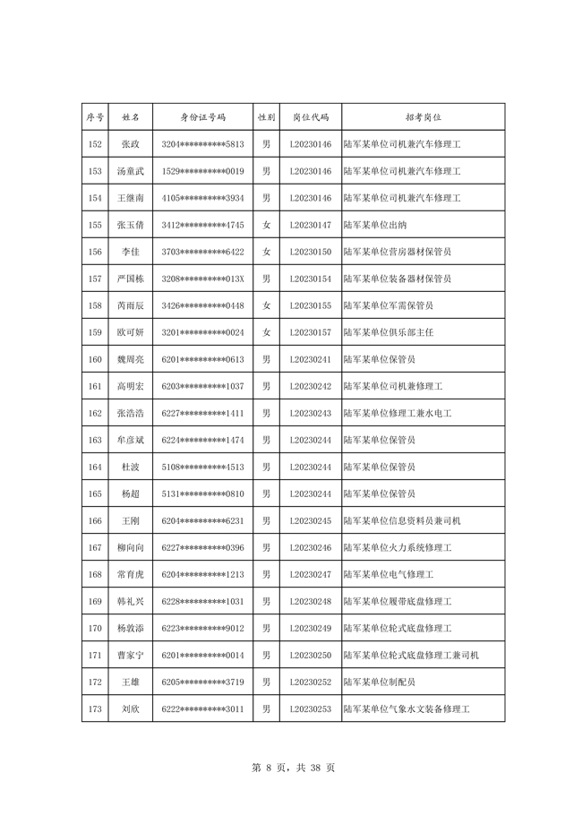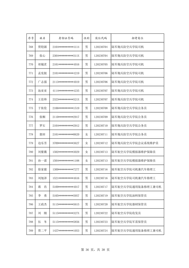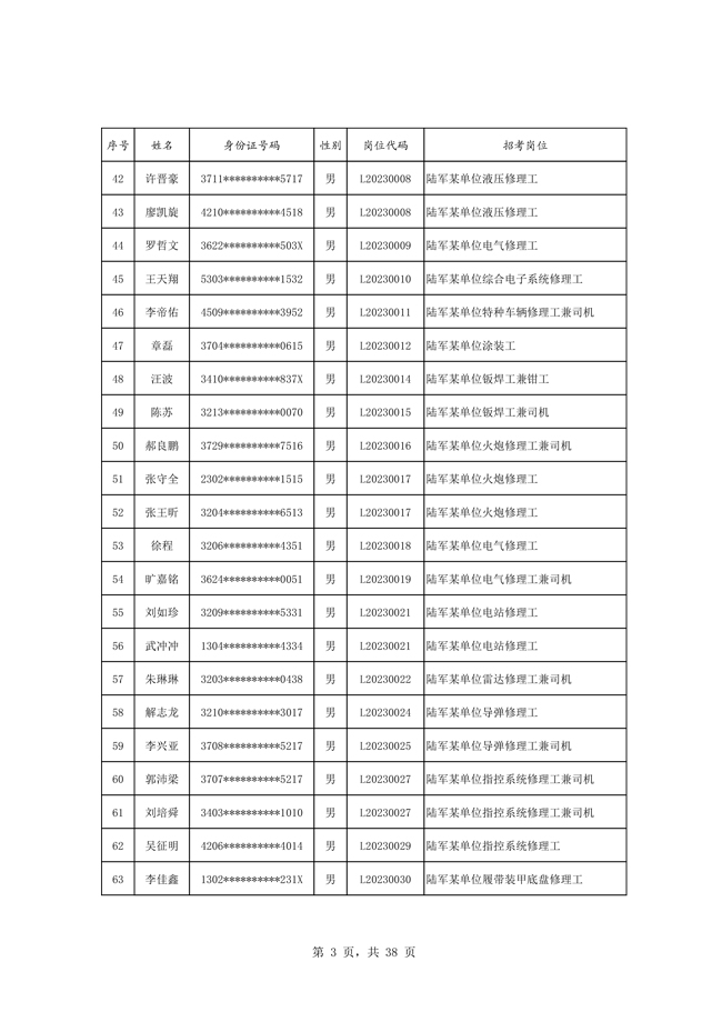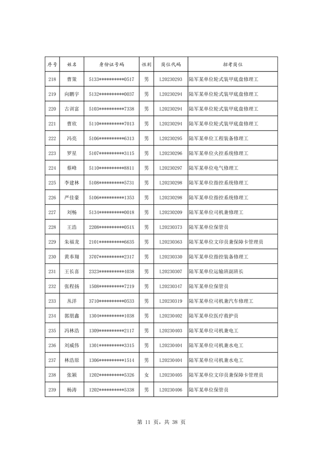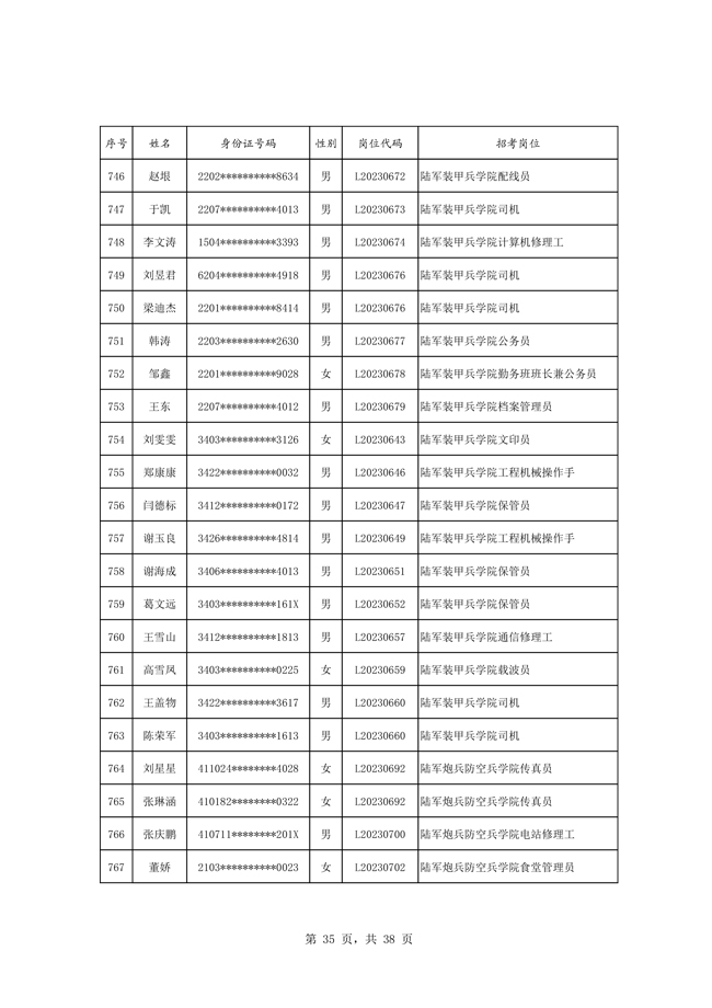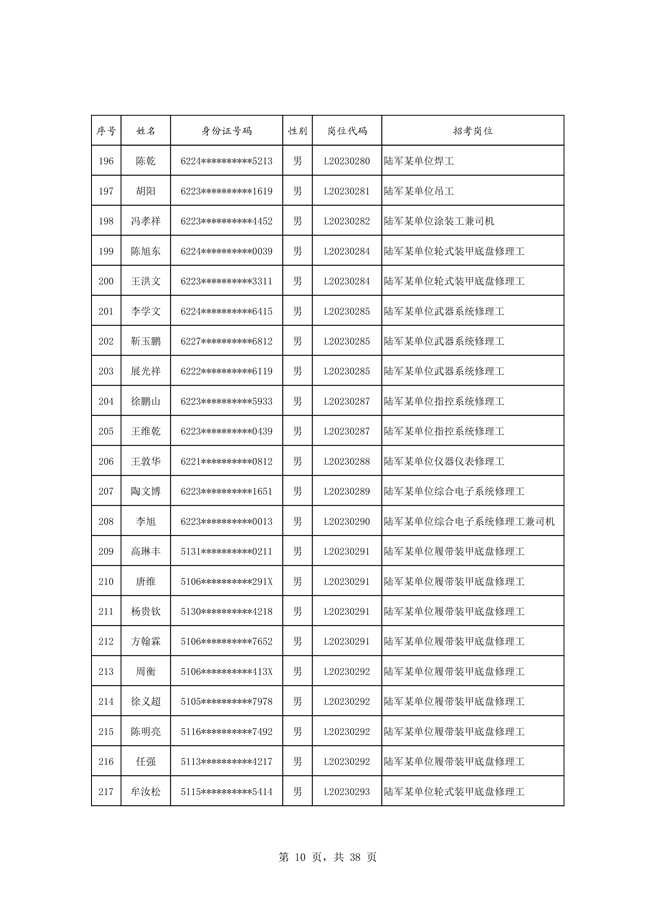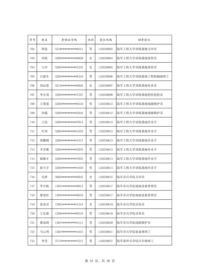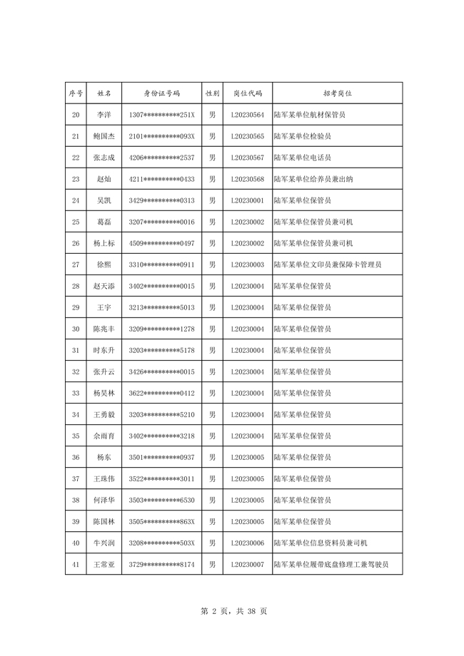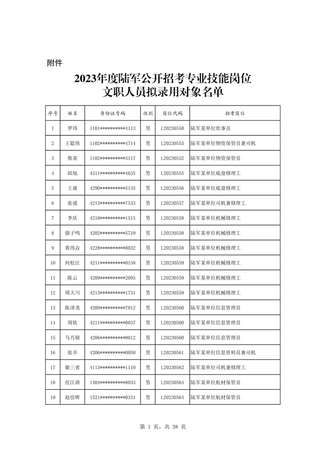 文章標題:公示2023年度陸軍公開招考專業(yè)技能崗位文職人員第二批擬錄用對象名單