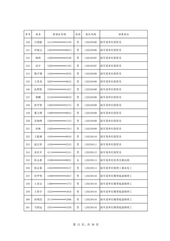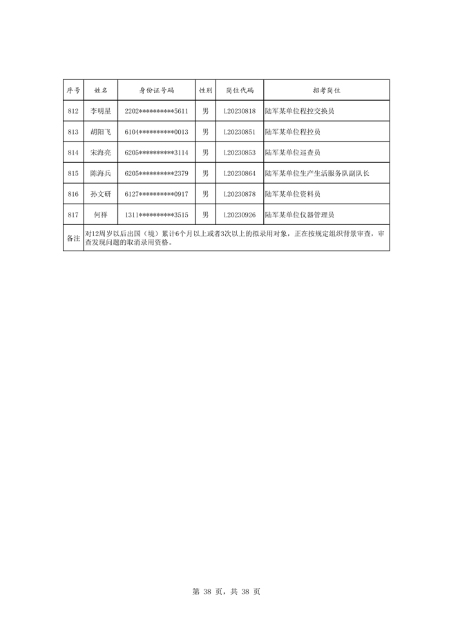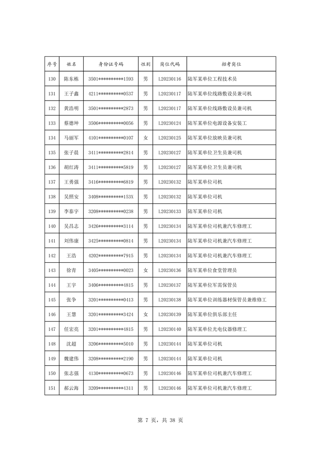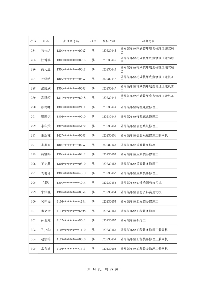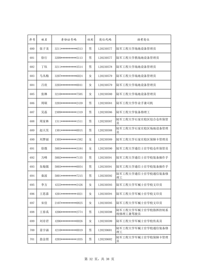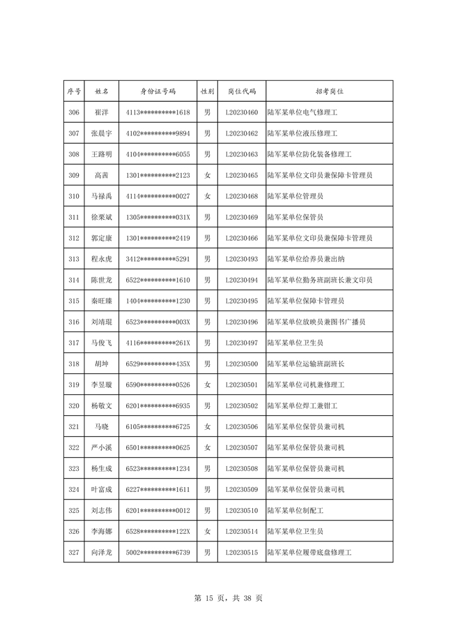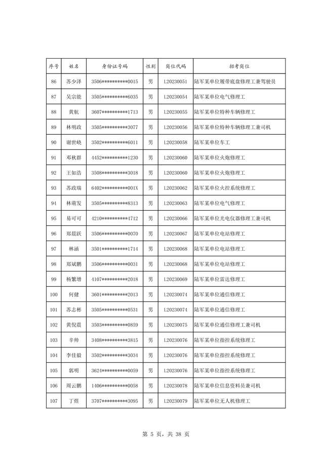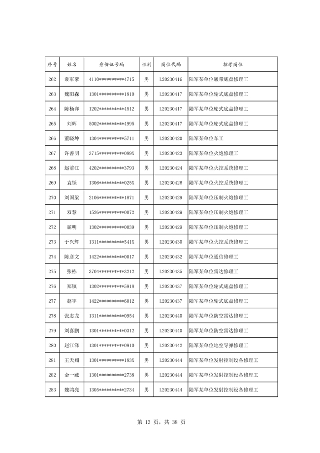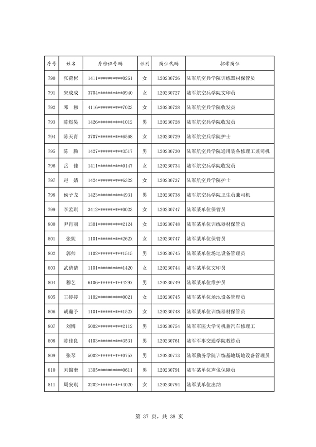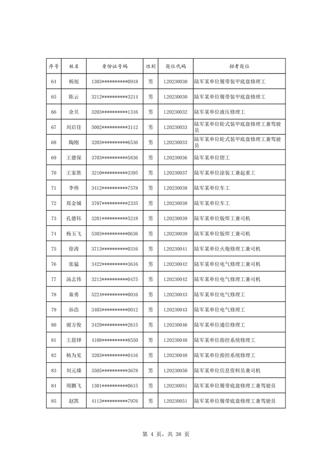 文章標題:公示2023年度陸軍公開招考專業(yè)技能崗位文職人員第二批擬錄用對象名單
