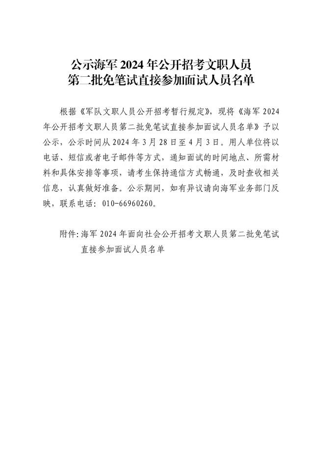 原文標(biāo)題:公示海軍2024年公開(kāi)招考文職人員第二批免筆試直接參加面試人員名單