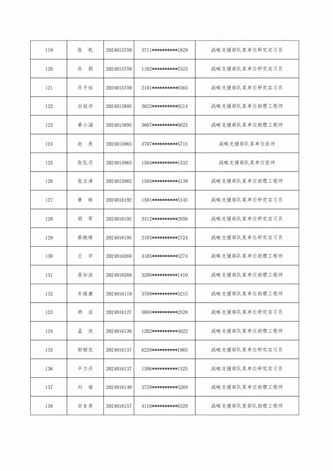 原文標(biāo)題:公布戰(zhàn)略支援部隊2024年公開招考文職人員第二批免筆試直接參加面試人員名單