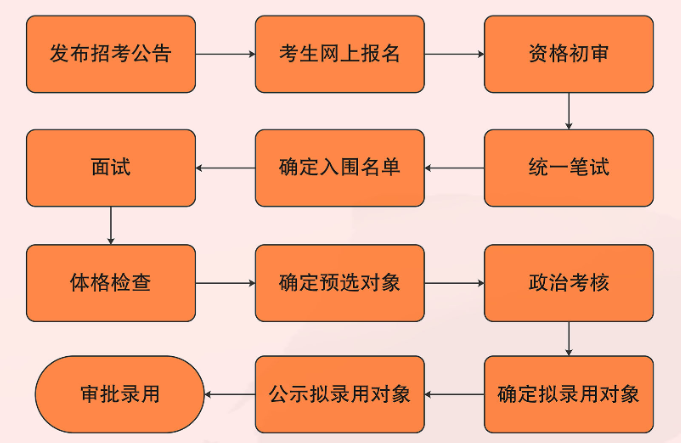 網(wǎng)上報(bào)名流程:用戶注冊(cè)->填報(bào)個(gè)人信息和相關(guān)證明材料->選擇報(bào)考崗位->提交報(bào)名資格條件初審->網(wǎng)上繳納報(bào)名費(fèi)->打印報(bào)名回執(zhí)單-> 打印本人準(zhǔn)考證。