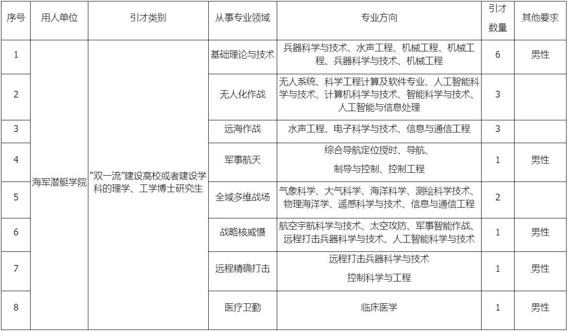 海軍潛艇學(xué)院2024年直接引進(jìn)