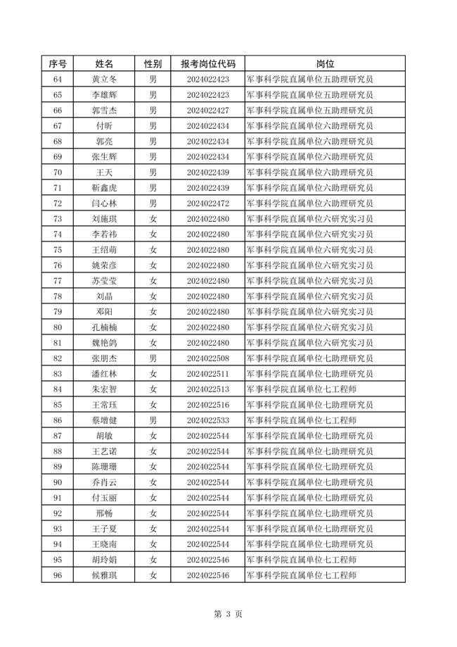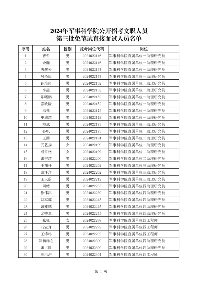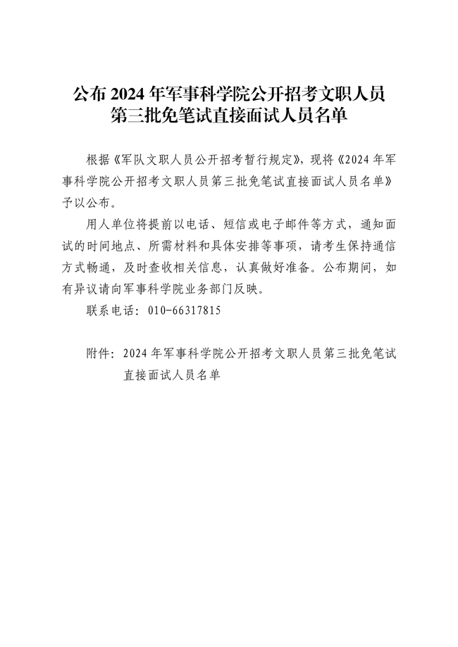 原文標題:公布2024年軍事科學院公開招考文職人員第三批免筆試直接面試人員名單
