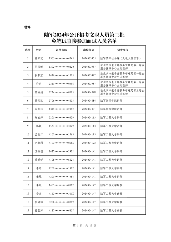 原文標題:公布陸軍2024年公開招考文職人員第三批免筆試直接參加面試人員名單