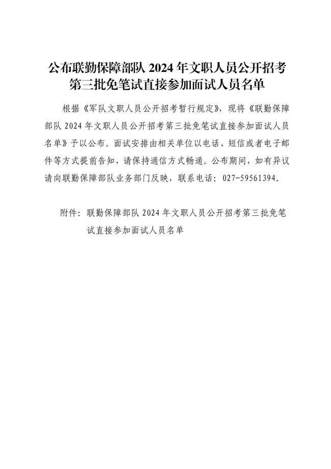原文標(biāo)題:公布聯(lián)勤保障部隊(duì)2024年文職人員公開招考第三批免筆試直接參加面試人員名單