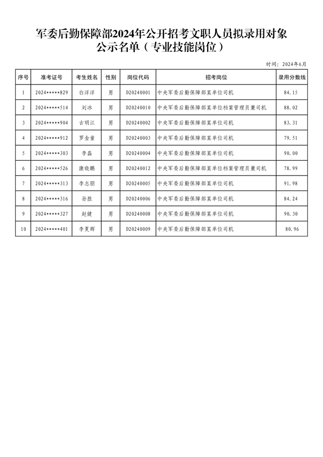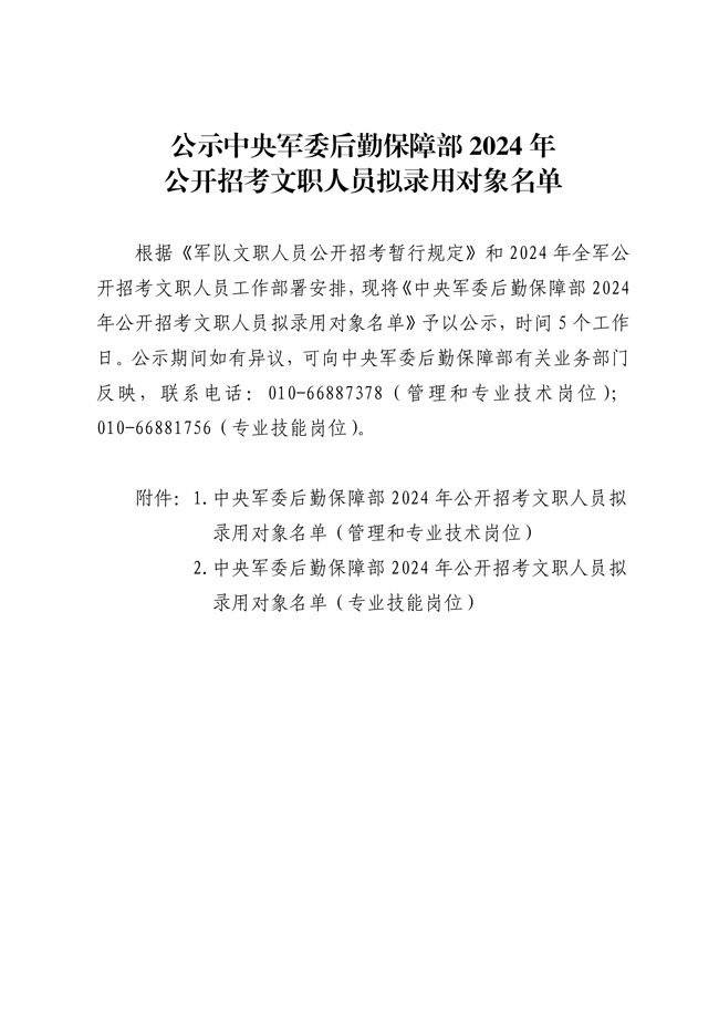 原文標題:公示中央軍委后勤保障部2024年公開招考文職人員擬錄用對象名單