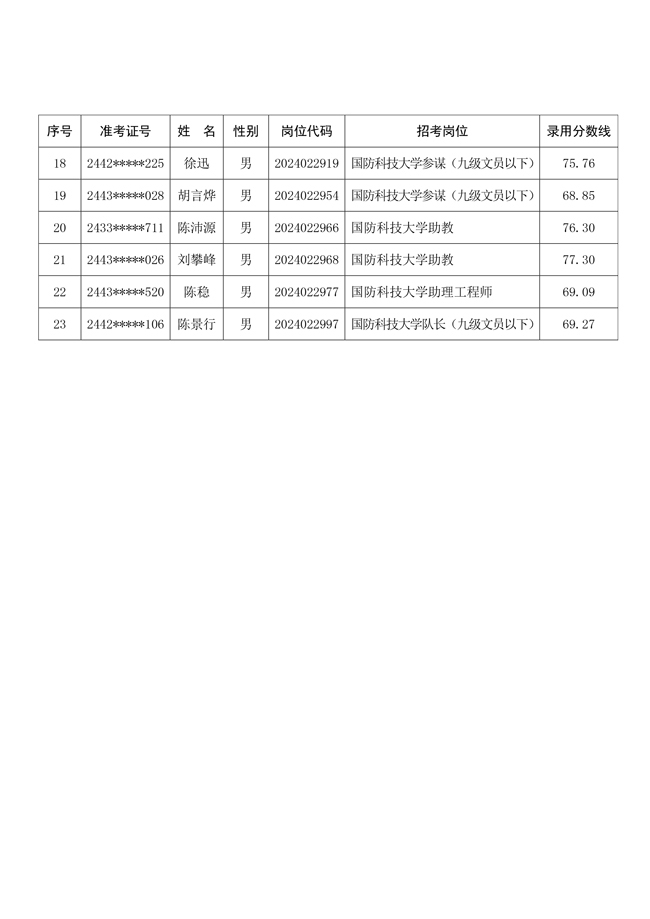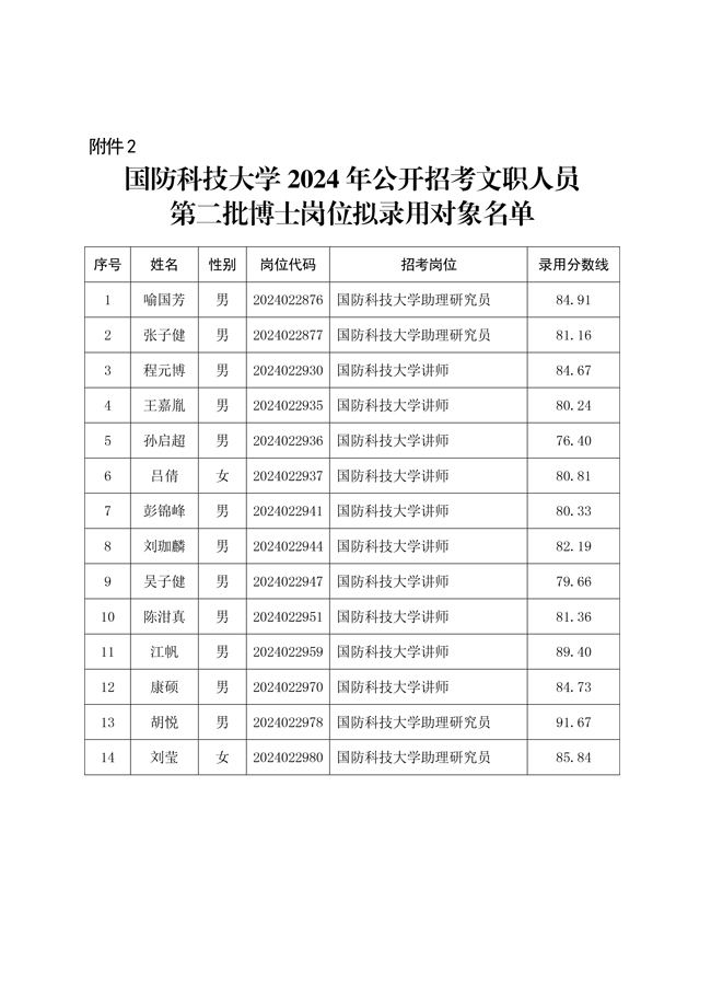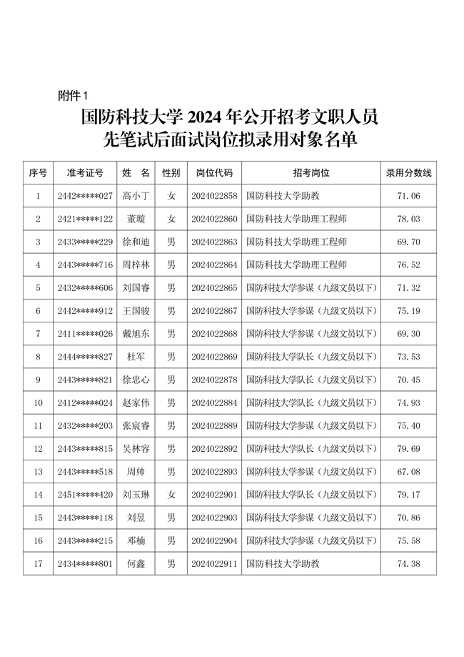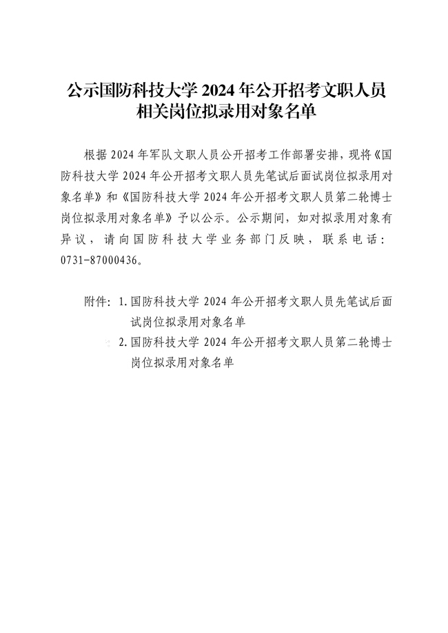 原文標(biāo)題:公示國防科技大學(xué)2024年公開招考文職人員相關(guān)崗位擬錄用對象名單
