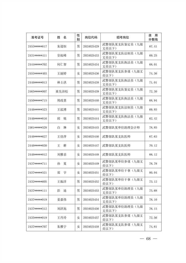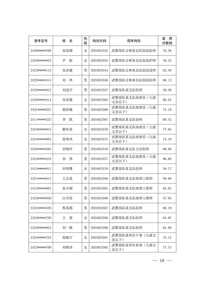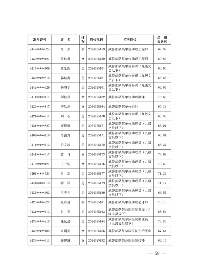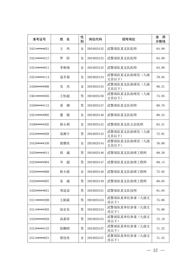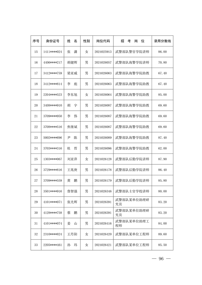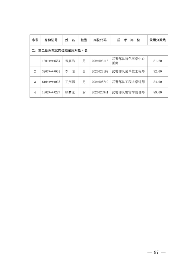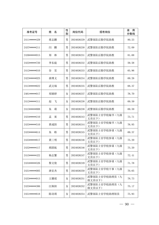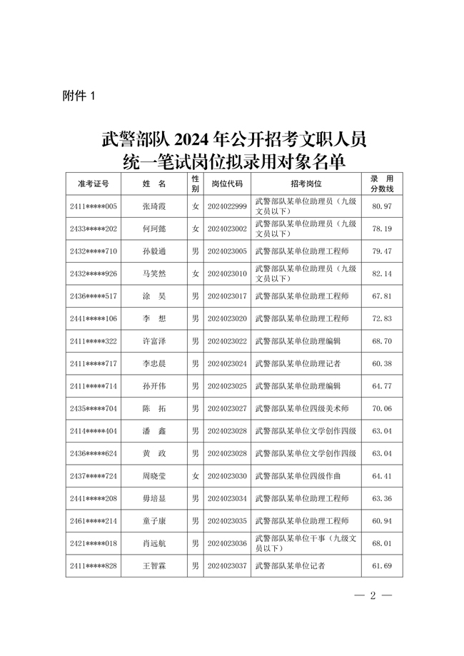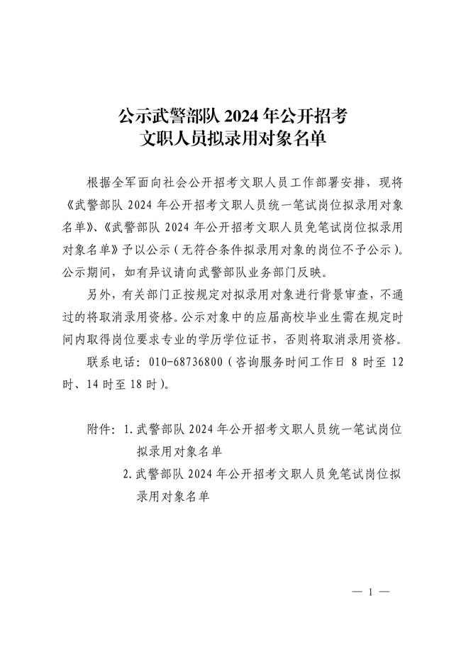 原文標題:公示武警部隊2024年公開招考文職人員擬錄用對象名單