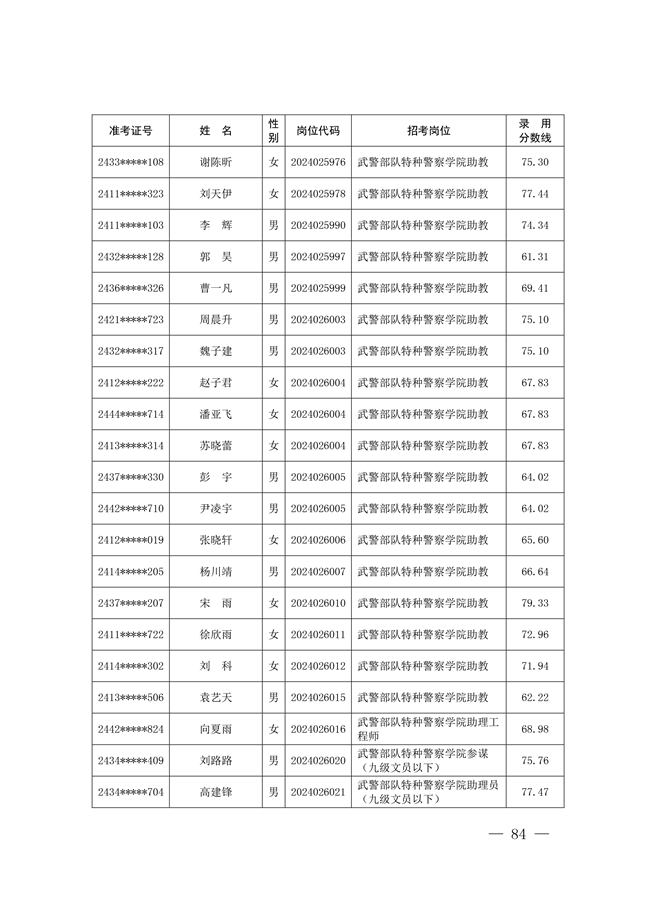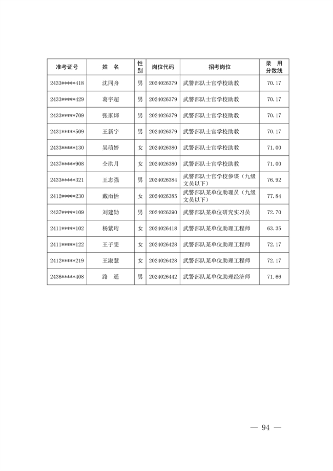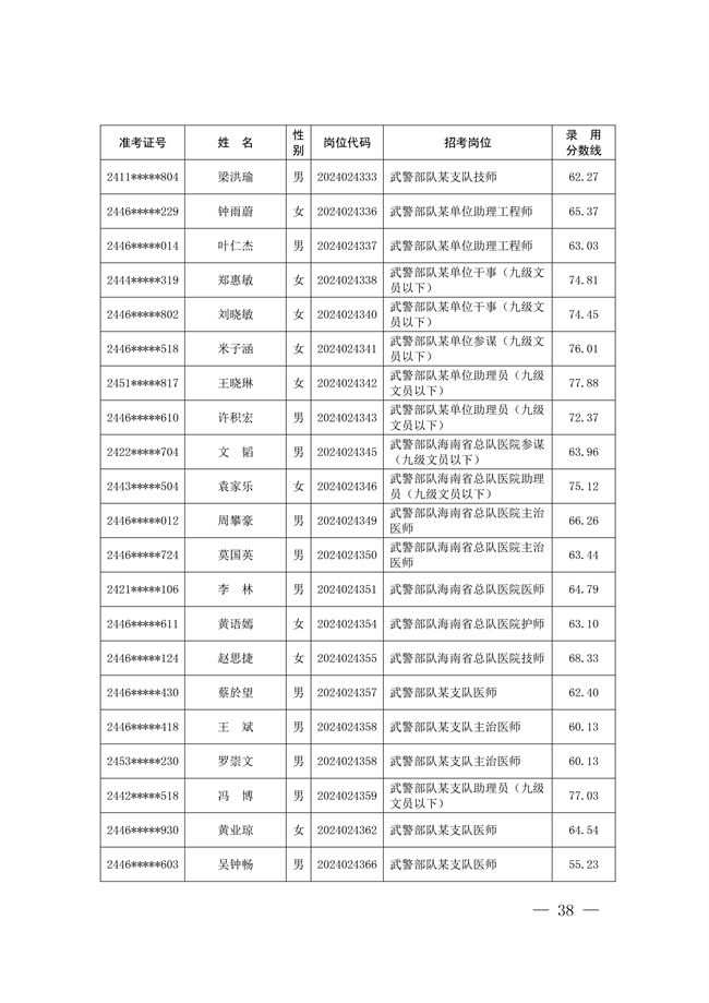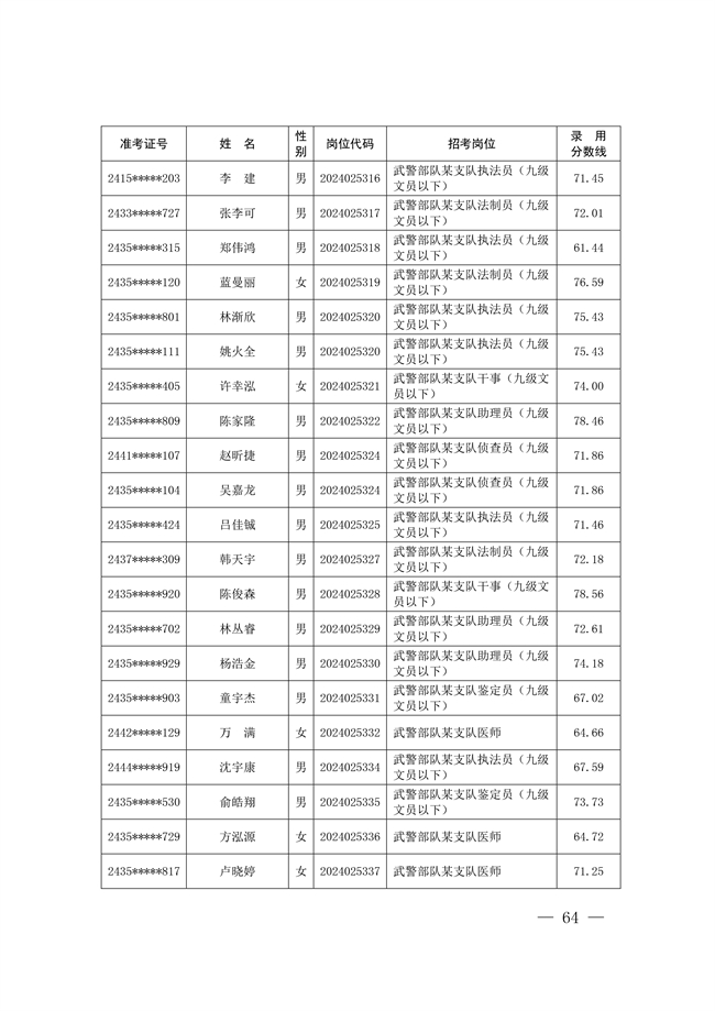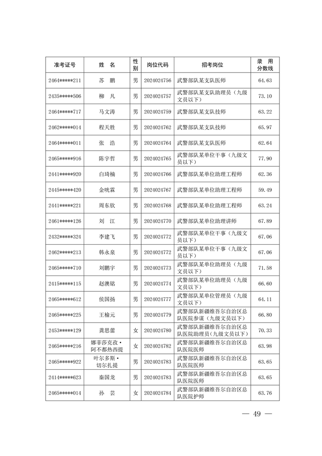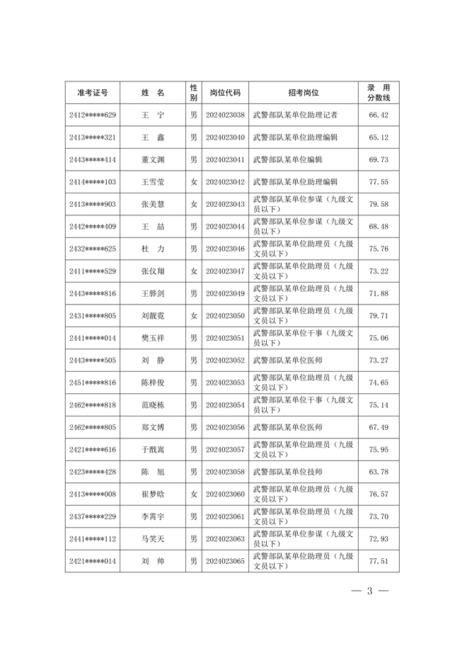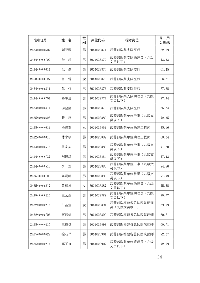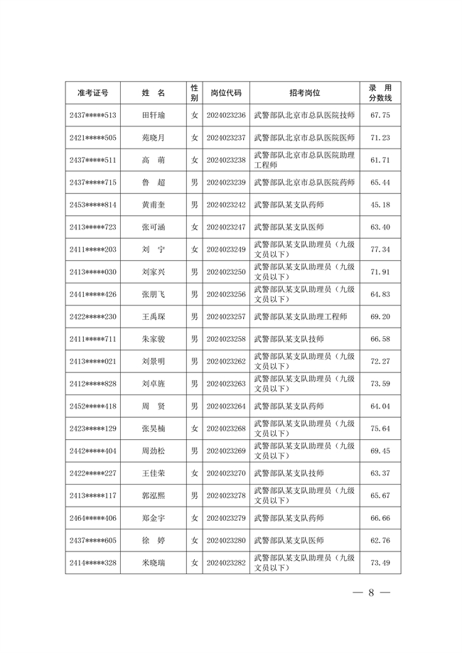 原文標題:公示武警部隊2024年公開招考文職人員擬錄用對象名單