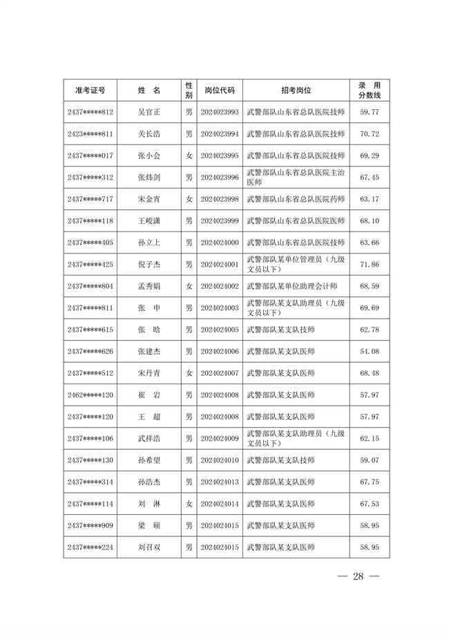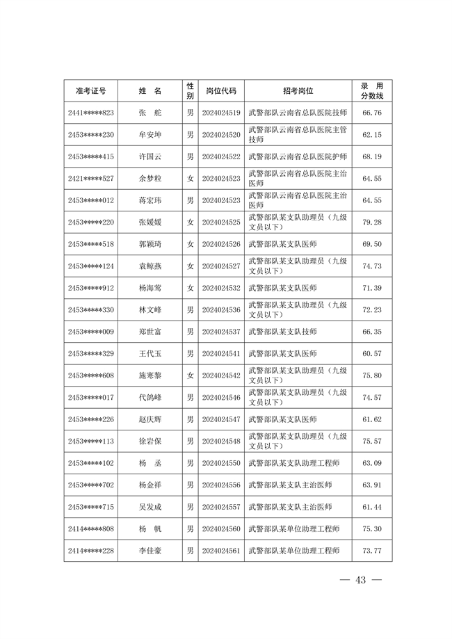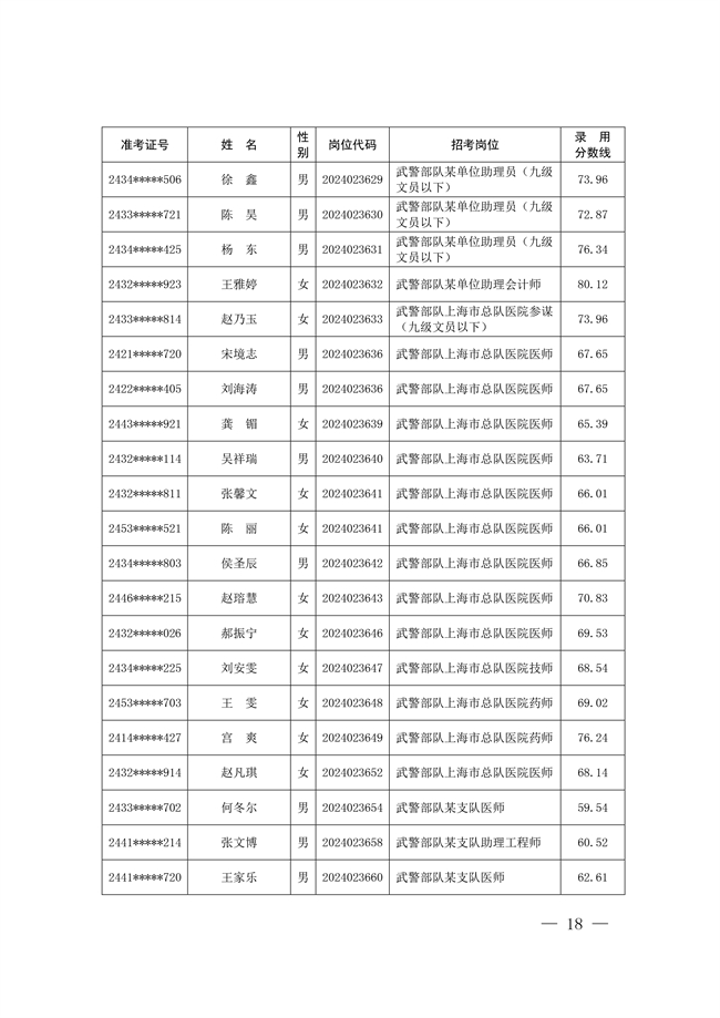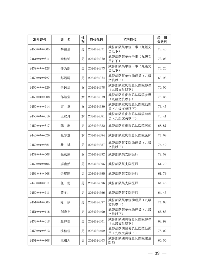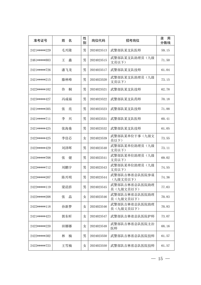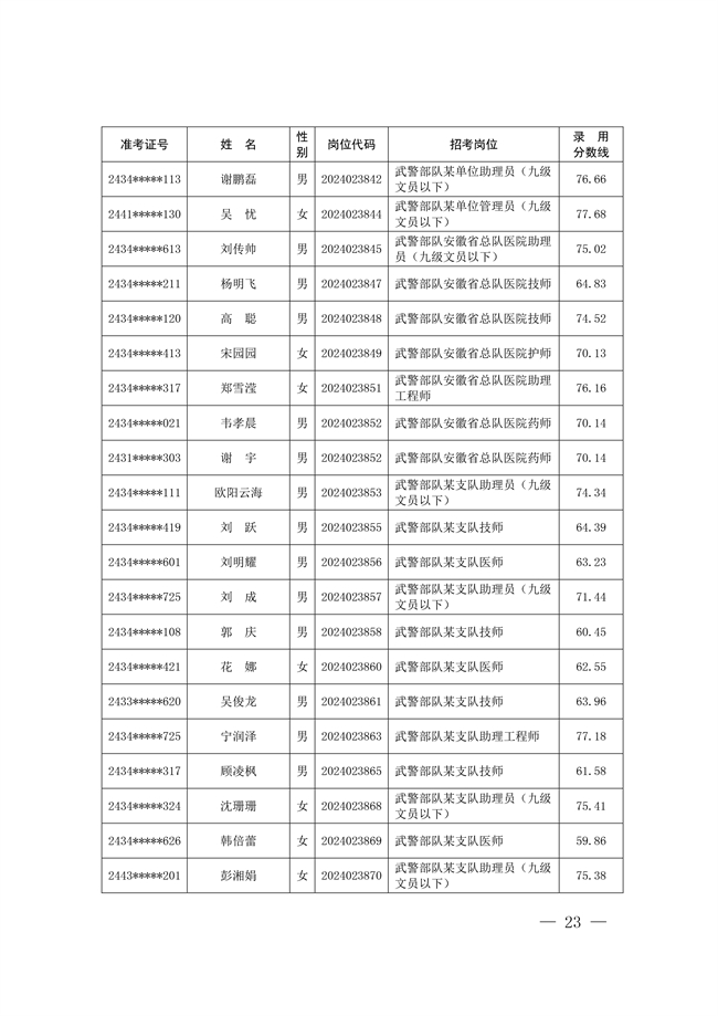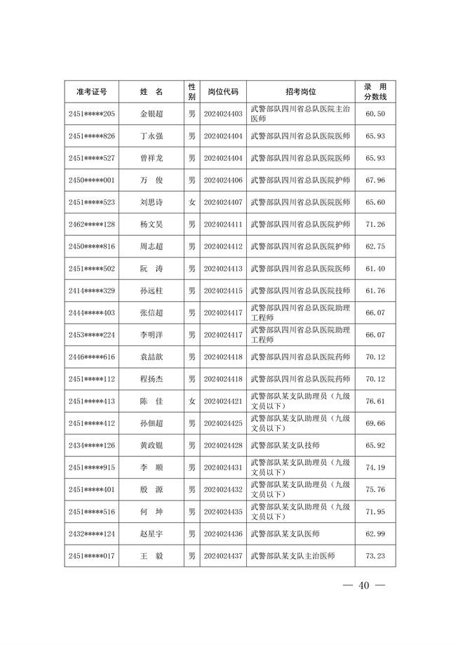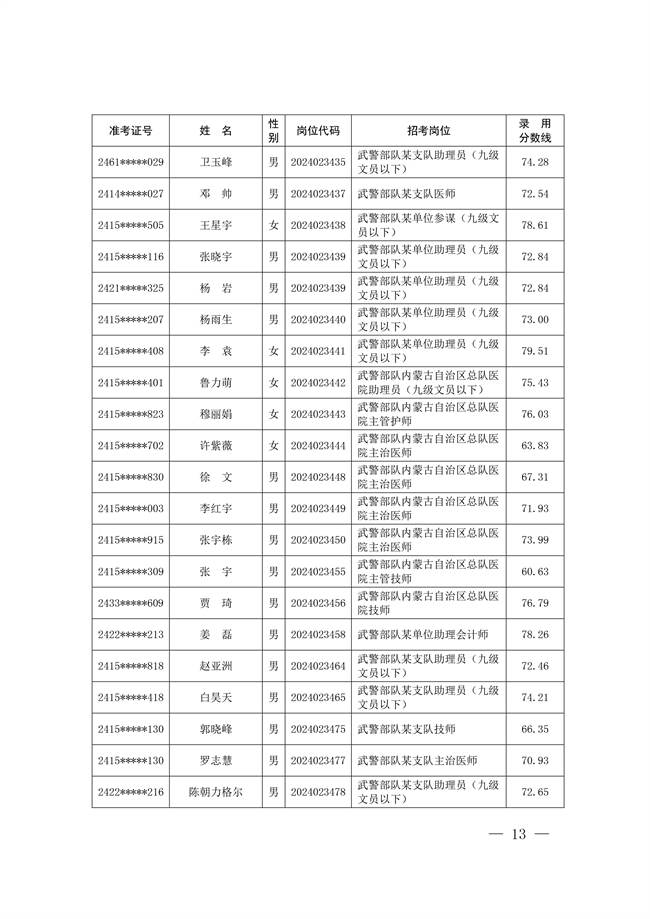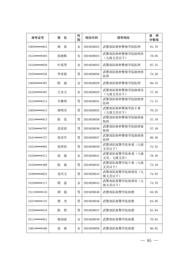 原文標題:公示武警部隊2024年公開招考文職人員擬錄用對象名單