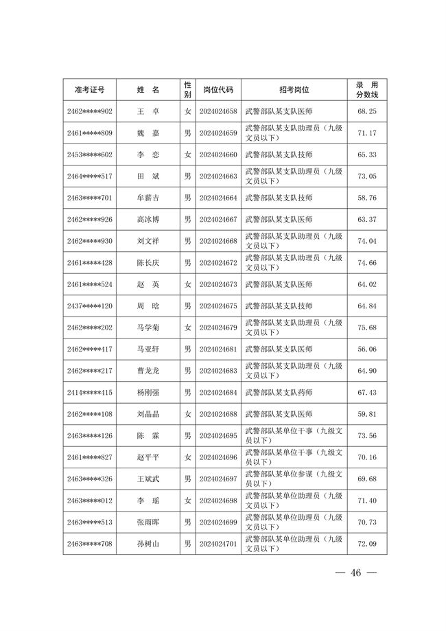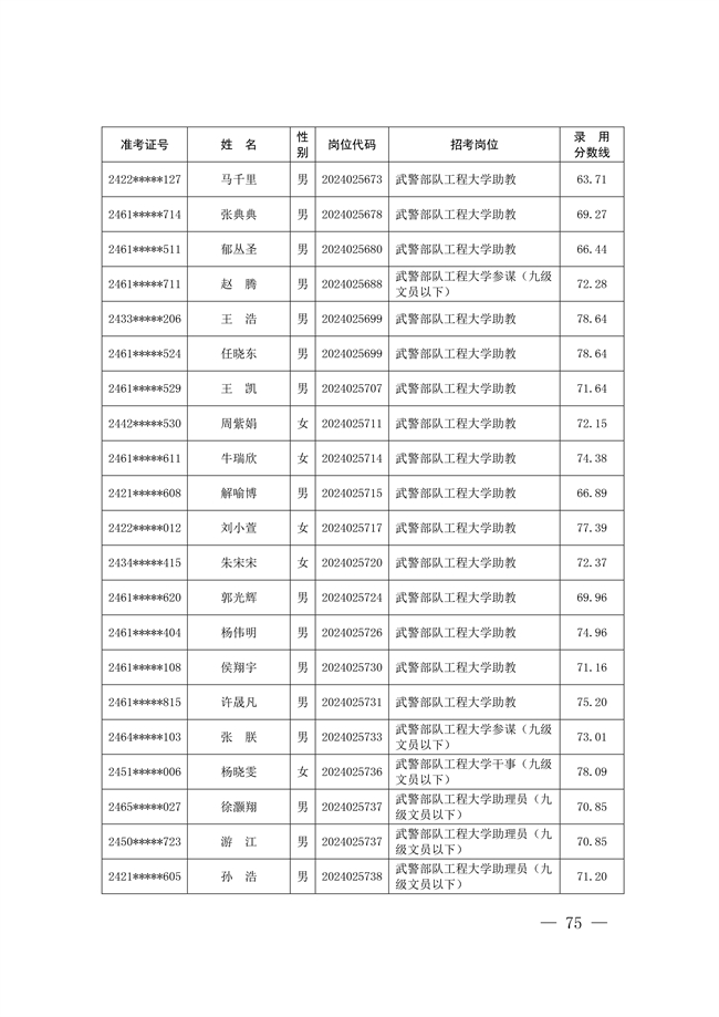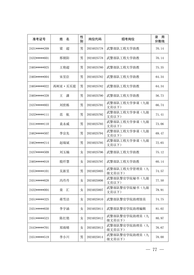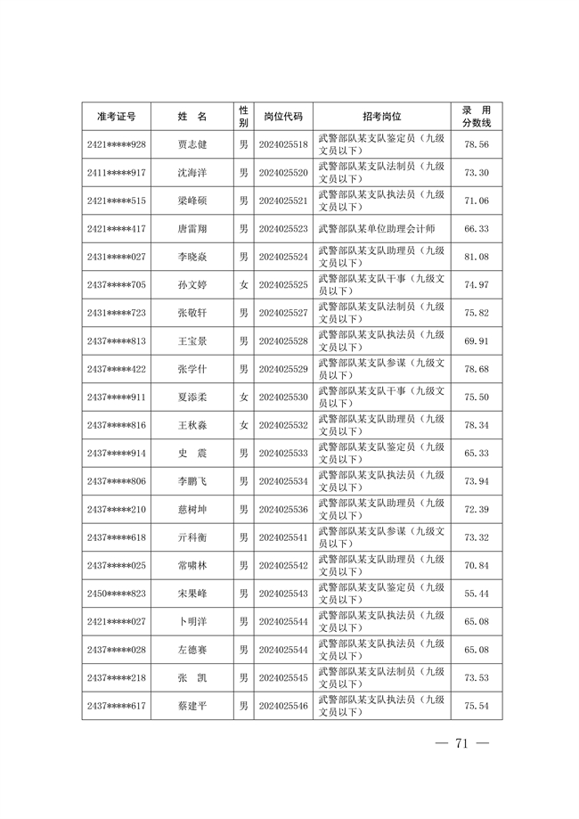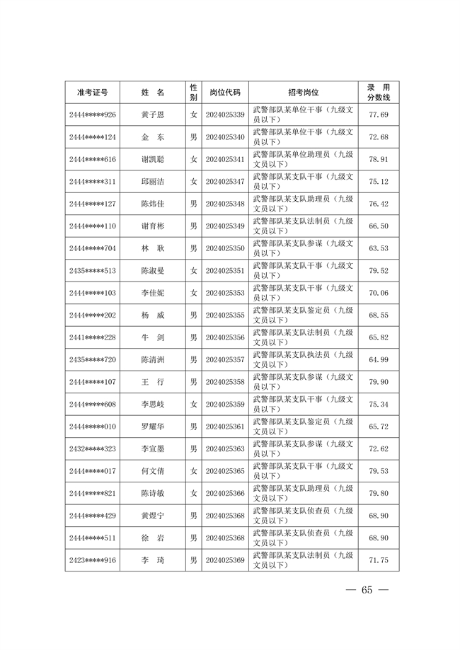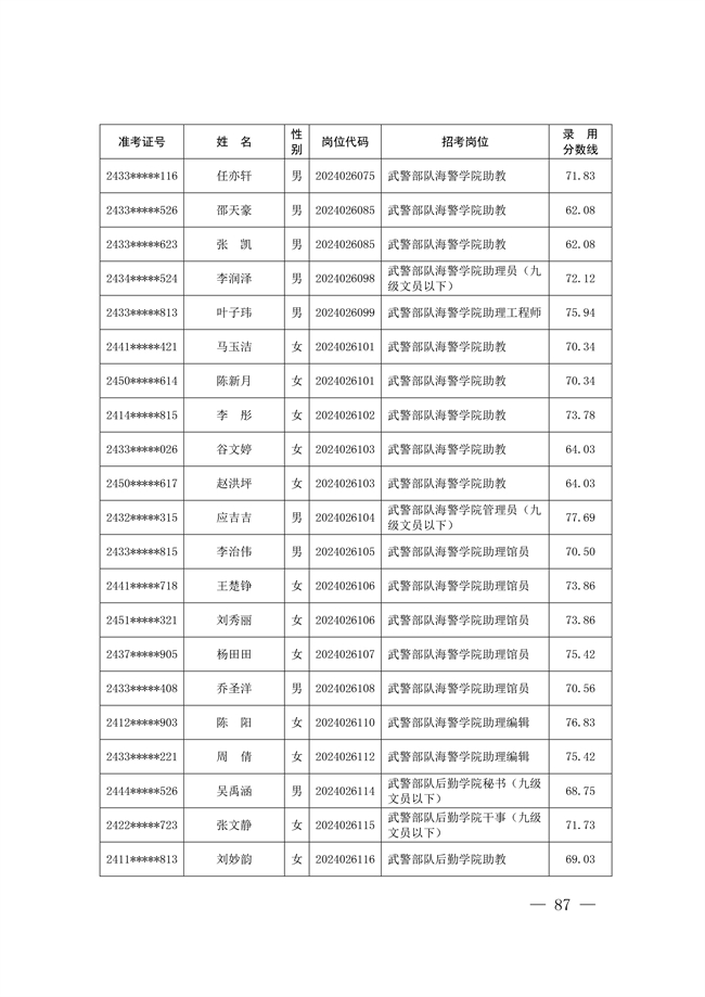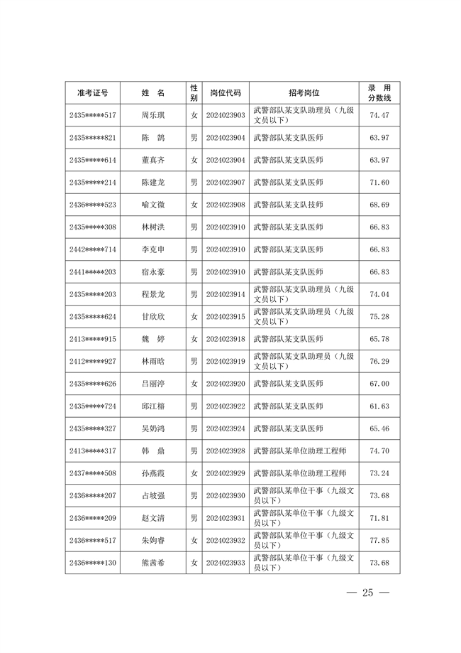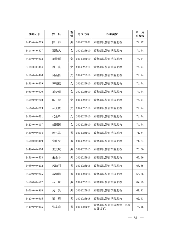 2025年武裝部文職人員擬錄用名單(含上岸分數(shù)線) 2025-10-09