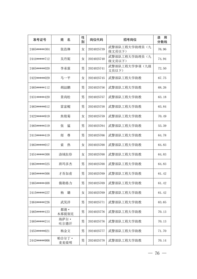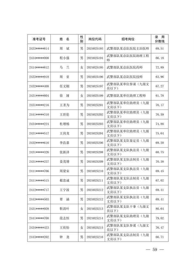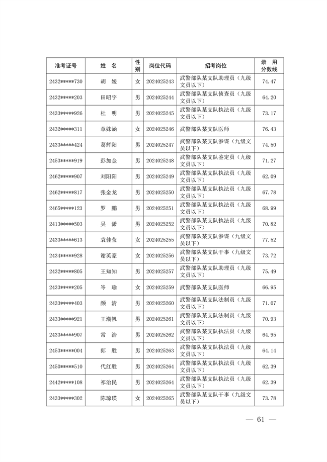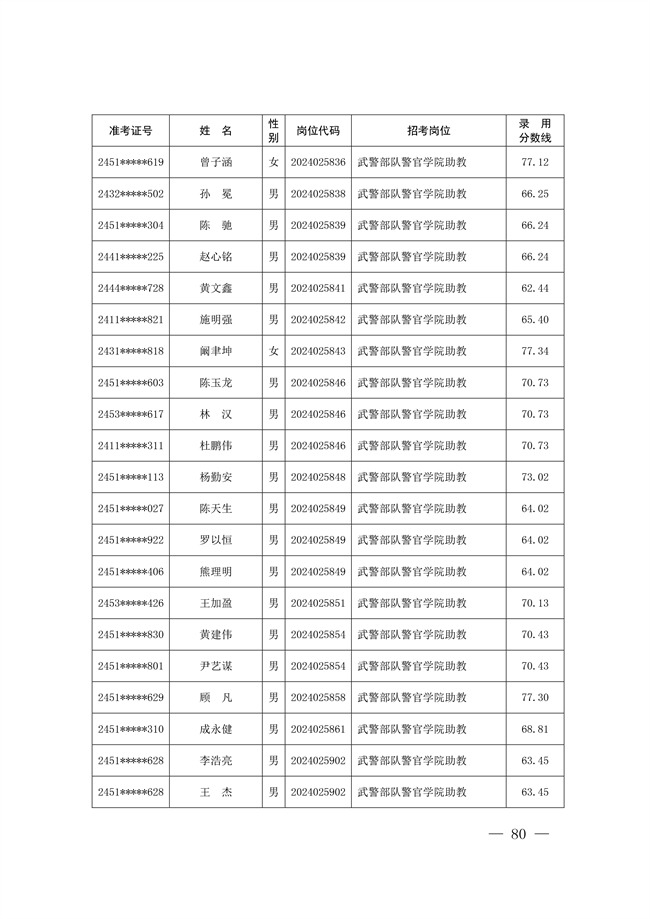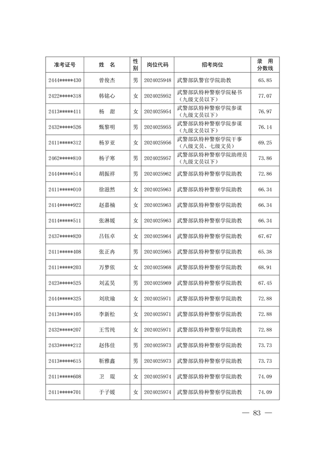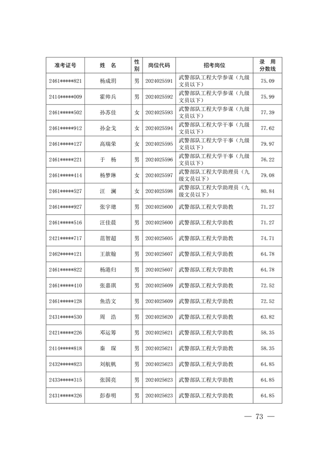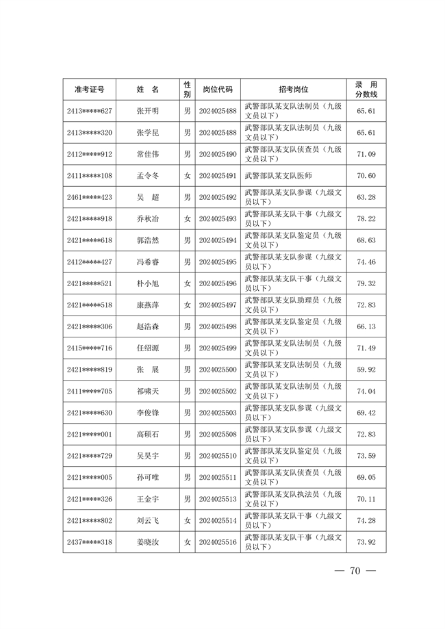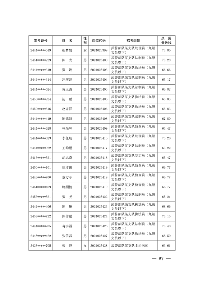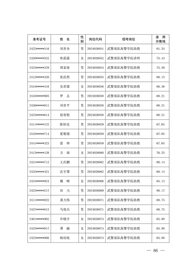 2025年武裝部文職人員擬錄用名單(含上岸分數(shù)線) 2025-10-09