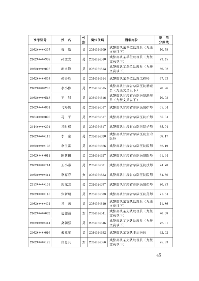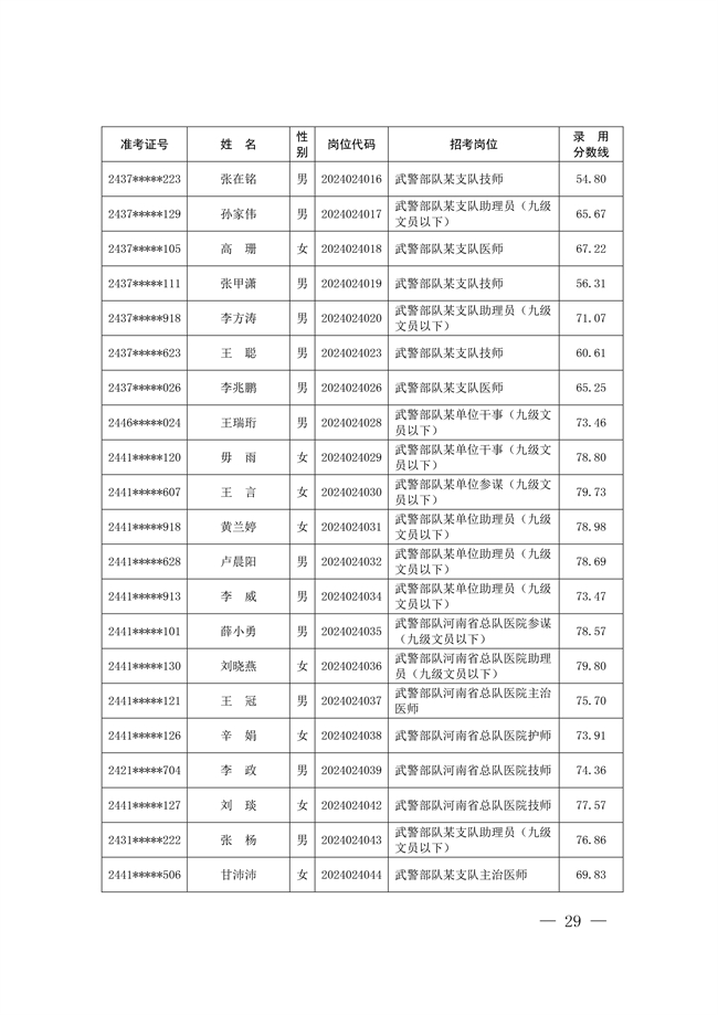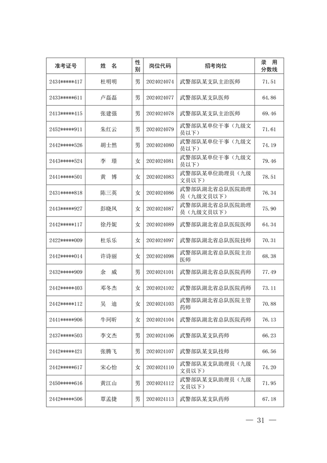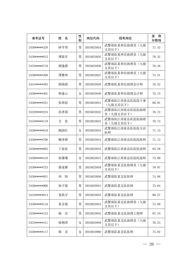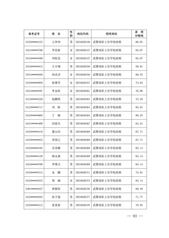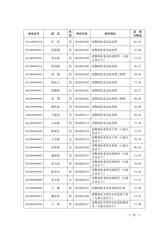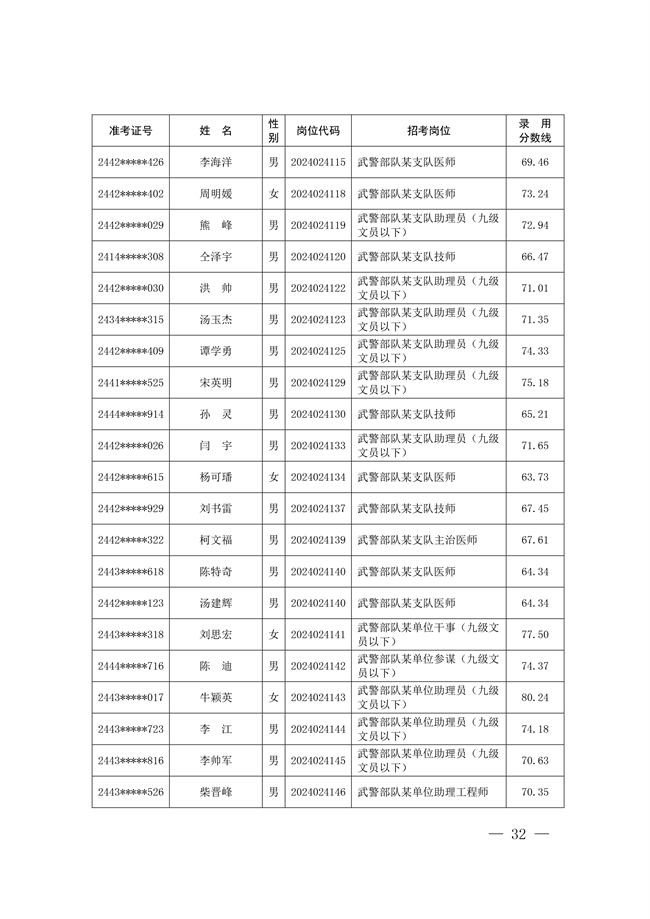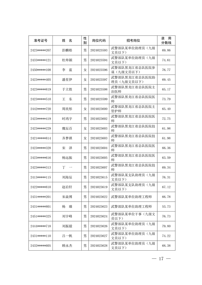 2025年武裝部文職人員擬錄用名單(含上岸分數(shù)線) 2025-10-09