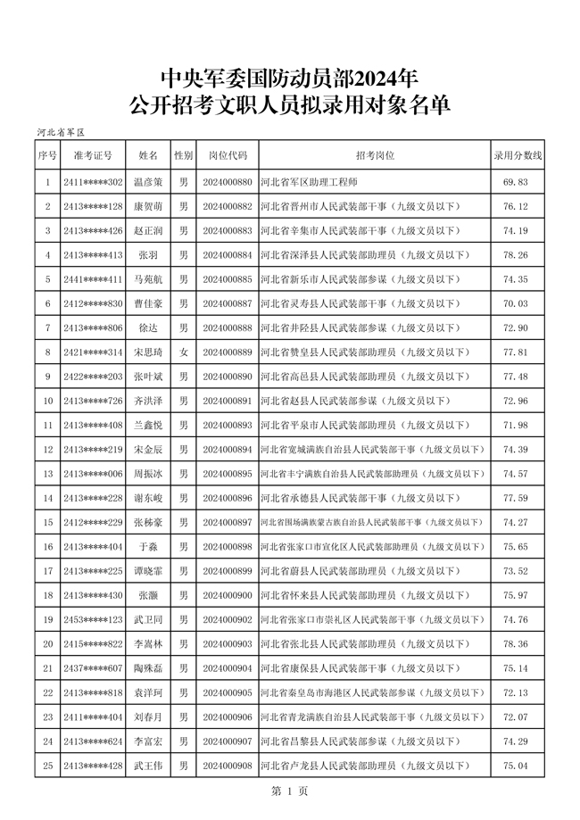 原文標題:中央軍委國防動員部2024年公開招考文職人員擬錄用對象名單