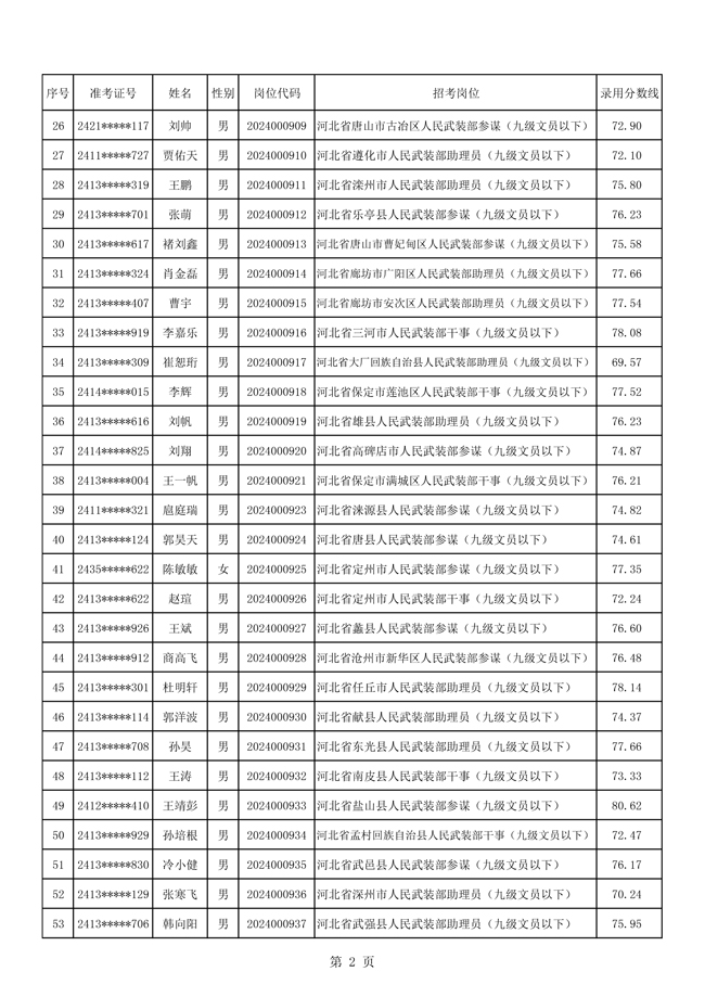 2025年武裝部文職人員擬錄用名單(含上岸分數(shù)線) 2025-10-09