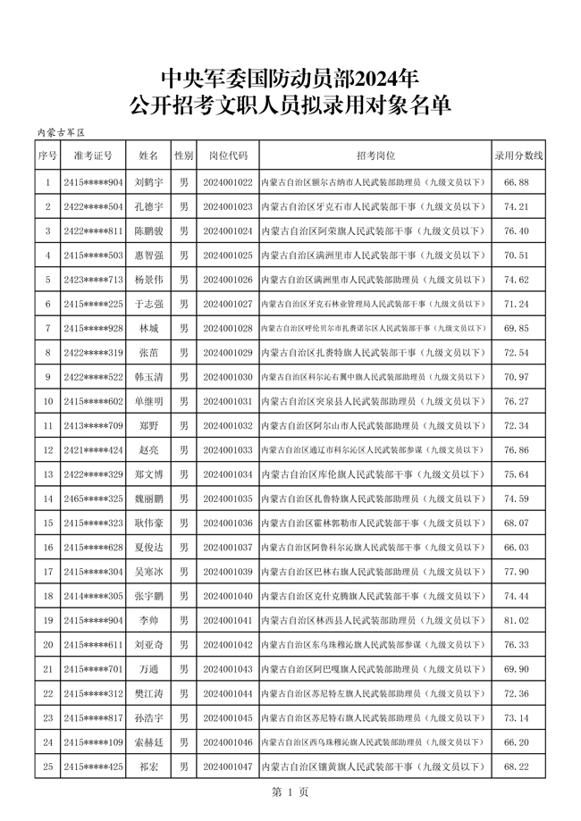 原文標題:中央軍委國防動員部2024年公開招考文職人員擬錄用對象名單