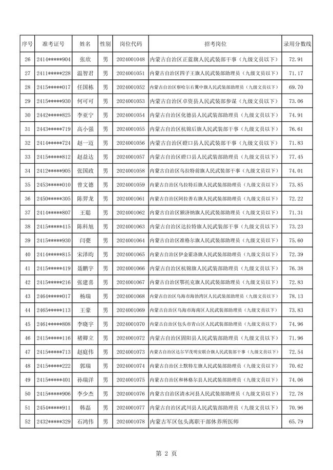 2025年武裝部文職人員擬錄用名單(含上岸分數(shù)線) 2025-10-09