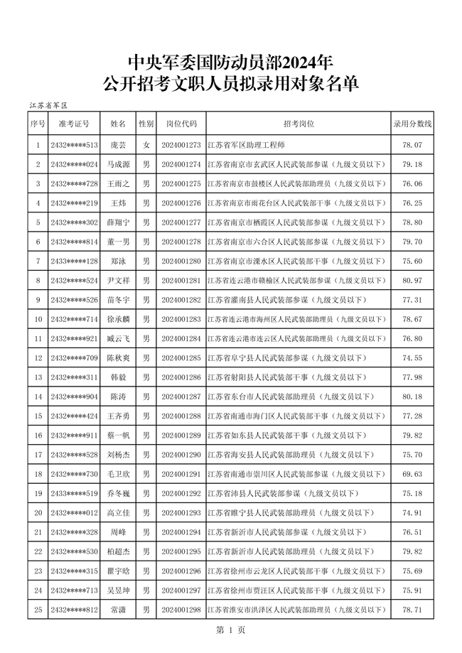 原文標(biāo)題:中央軍委國防動員部2024年公開招考文職人員擬錄用對象名單